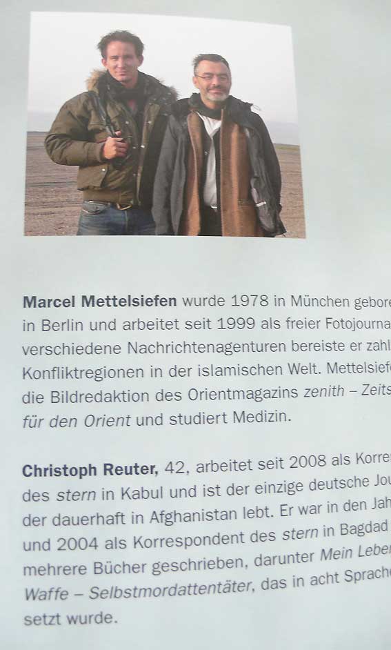 Sehen so Menschen aus, denen wir etwas beizubringen, zu lehren haben. Mit der Waffe in der Hand unsere Ordnung. Aufgenommen am Ort des Geschehens von zwei Journalisten aus Deutschland. Dem Land der Täter, die dort waren. Opfergesichter 2009/10. In Potsdam zu sehen, in dem dazu erschienenen Buch. Unter uns, im Mai 65 Jahre nach dem Mai 1945.