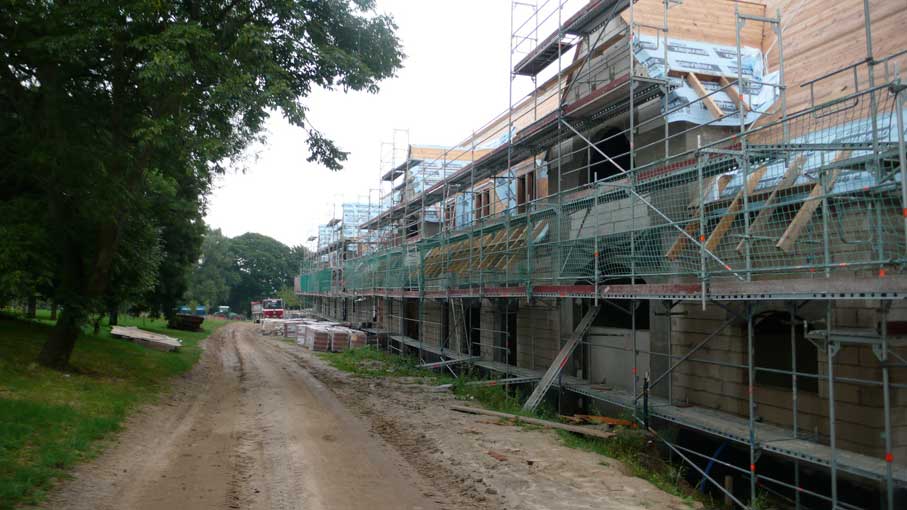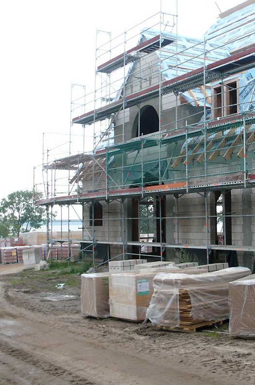 Man nennt ihn hier den Junker Graf, weil er so tut als wär er mindest zwei davon. Der hier baut, in Dimensionen von Görings Carinhal in der Schorfheide und kommt doch nicht ran.