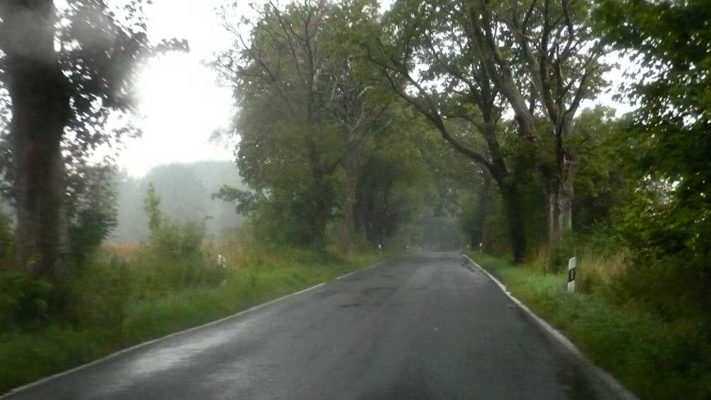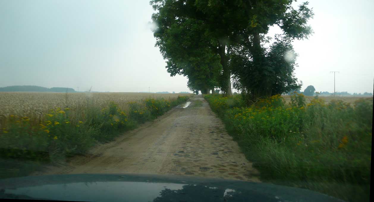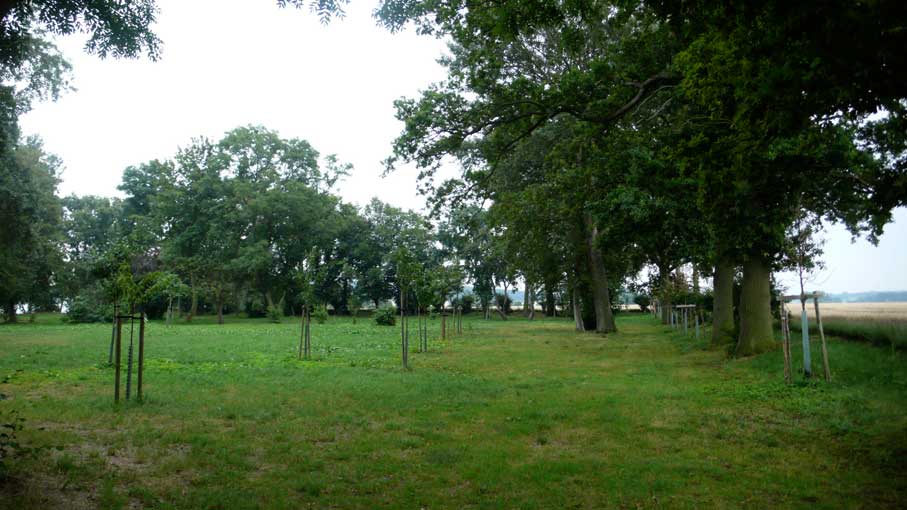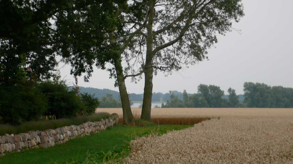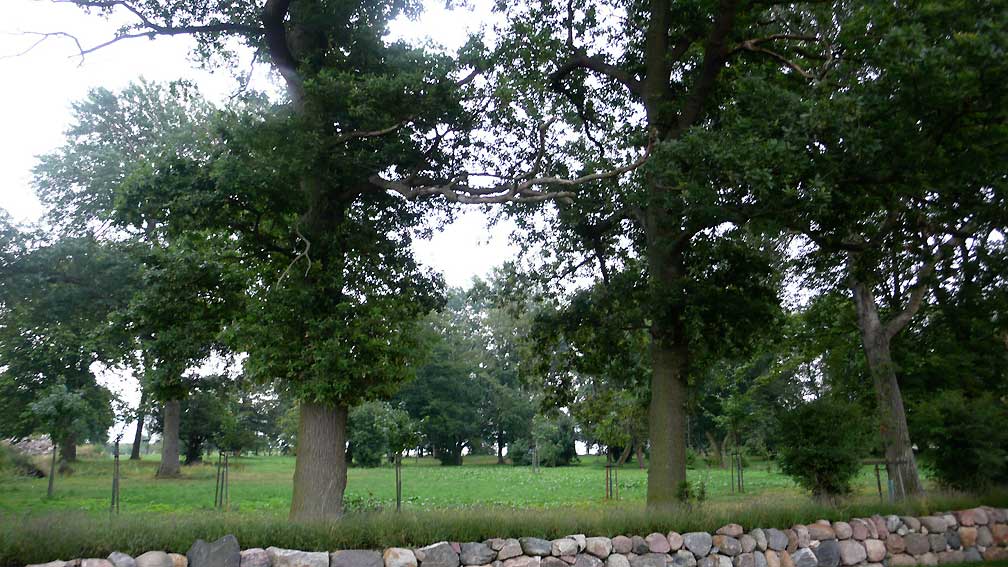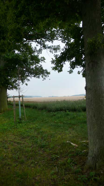 wo das ehemalig Gutshaus stand ist heute nichts. Ausser neue Bäume in Reih und Glied wie neben den alten Zeugen und Blicken in andere Welten. Über Felder und Bodden. Aber auch solche Arreale nennen sich Gut.