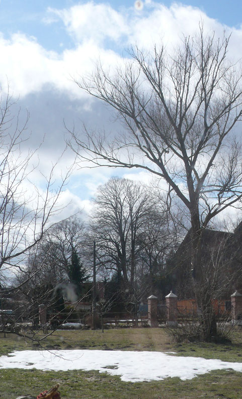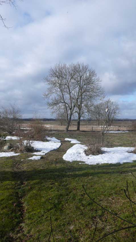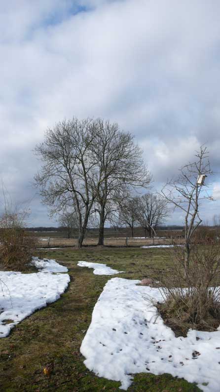 vor 3 Wochen war hier der Schnee meterhoch dazwischen nicht Sonne und Wärme. Trotzdem hat die Natur es gemacht, dass es schmilzt. Und die Vögel, über den Winter gebracht, ihr Nestgehäuse wählen.