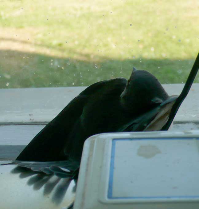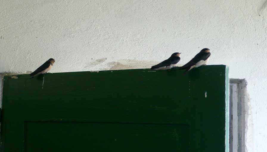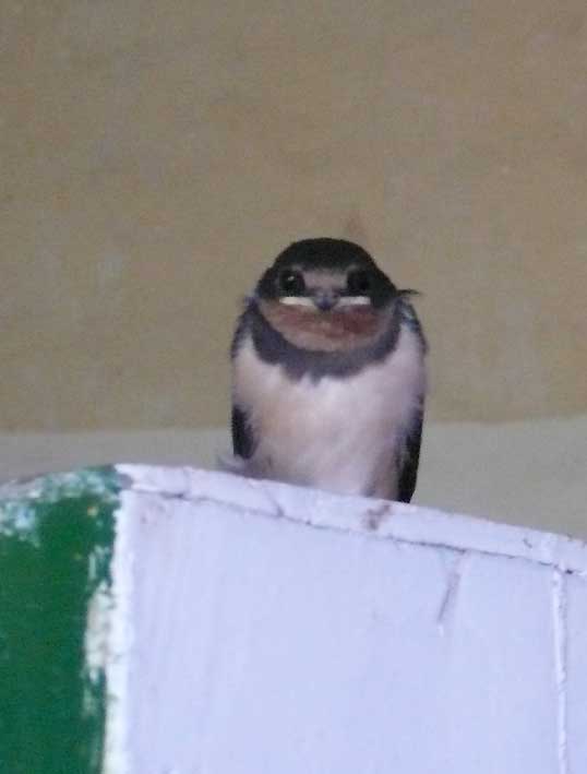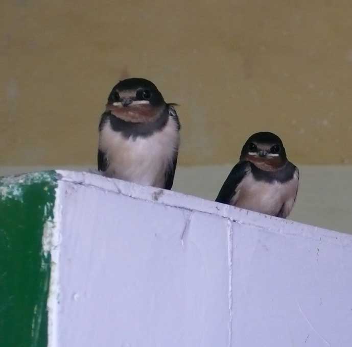 wieder die jungen Schwalben in 14 Tagen aus dünnhäuitigen Bällen zu vielfarbigen Federwesen mit Flügeln auf Augenhöhe geworden.