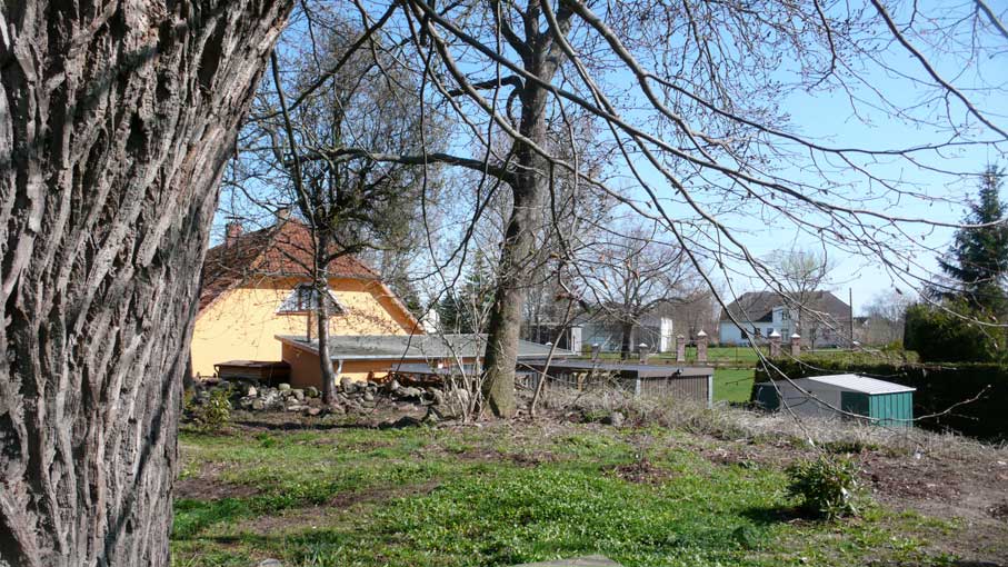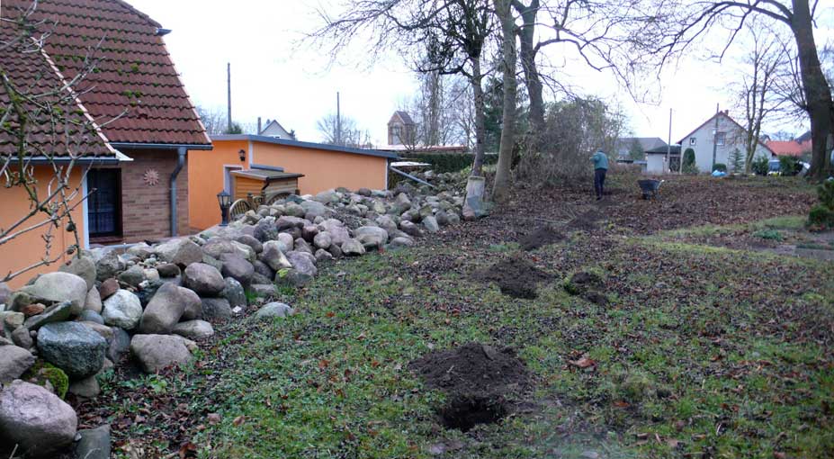 die neuen Pflanzungen lassen die 3x 4 Meter des Hollunder aus, weil er selbst im November dominierend hilft das unsichtbar zu machen, was die Ruhe stört.