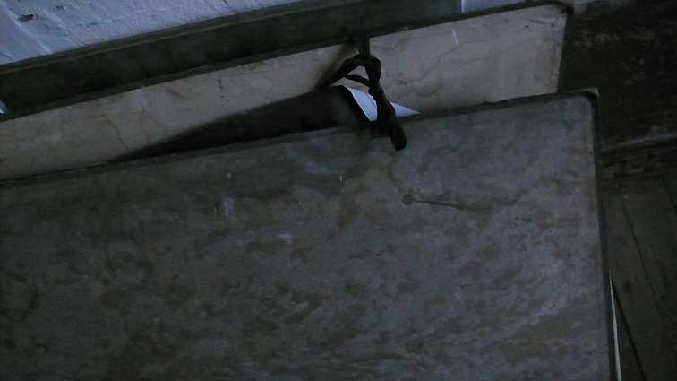 Restaurierung der Demminer Kreuzigung für Transport und Sicherung der Hängung. So die Menschen, die das tun. Präsentation der Filme.