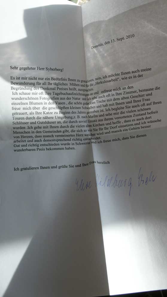 Rede von Kulturminister Tesch in Schwerin zur Verleihung ders Denkmalpreises M/V2010 für Nossendorf