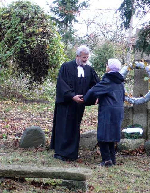 Pastor Raasch und M.Hamann 2009 bei der Einweihung des öffentichen Grabes für die Kriegstoten, das nun freiliegt.