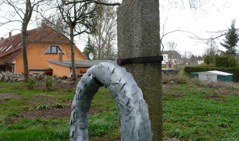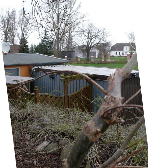 Der Friedhof in Nossendorf. Nach Neupflanzugen im Herbst im sensiblem Bereich n der Achse Kirche und Gutshaus und an der den Blicken offenen Grenze nach Osten (Anrainer W.)wurde die Ordnung so vorgenommen, dass in der Mitte ein dominiernden Hollunder mit Waldrebenbewuchs als Zentrum stehen blieb und sich alles andere darum ordnet. Nach jetziger Beschädigung durch nahezu totale Entfernung dieses solitäeren Hollunders entstand die Frage danach von wem und aus etwaigen Moiven. Die Besichtigung des Tatortes ergibt Schnitte und Brüche des dominierendes Hollunders. Der besorgte Pastor R. sagt er nicht und auch nicht in seinem Auftrag, der dort für ihn arbeitende und freundliche Sch. sagt er habe nur die Waldrebe von dem Hollunder gelöst und abgezogen ohne Schnitte und Brüche und weiss von nichts. Wenn es jemand anders war, geschah es also ohne Wissen und Anordnung auf fremden Grund von dritter Seite und es wäre Hausfriedensbruch und Sachbeschädigung.