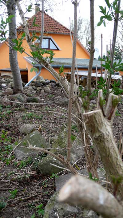 2004 wurden auf unserem Grund an einer sensiblen Seite sämtliche neu gepflanzten Sträucher und Bäume durch schneiden oder umbrechnen beschädigt. Die Anzeige gegen den Hauptverdächtigen wurde zurückgenommen. Er sitzt heute nach anderen Fällen seine sich sammelnden Strafen ab.