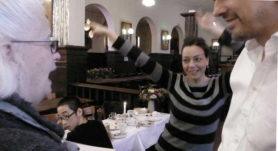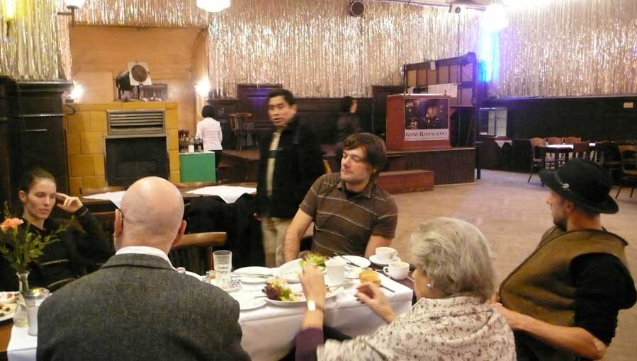 "Am Morgen nach dem Fest versammelt Hans Jürgen Syberberg noch einmal alle Getreuen zum gemeinsamen Frühstück in Clärchens Ballhaus; ein traditionsreiches und immer noch quicklebendiges Etablissement in der galeriengespickten Auguststraße, also im Herzen der wiedererwachten Mitte Berlins. Sie sind aus München, Amsterdam und Helsinki, ja sogar aus dem fernöstlichen Tokio an die Spree gekommen, um mitzuerleben, wie Syberbergs Kunst nach zwanzigjähriger Abstinenz ins deutsche Kulturleben zurückkehrt - aus dem er zwei Jahrzehnte zuvor verbannt worden ist"(Ingo Langner Tagespost 16.11.10).