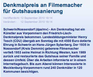 Am Ende der Theaterarbeiten 1994, Arbeiten auch an Nossendorf und seinen Erinnerungen und Verlusten auf dem Theater und im Film, stand der verlorene Auftrag - auf den Bühnen und im Film.
