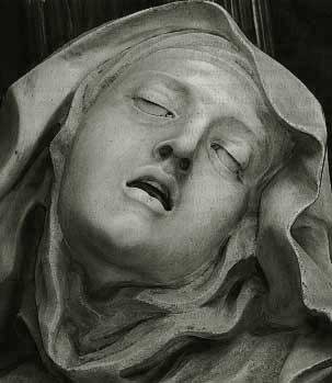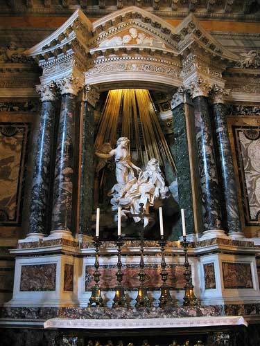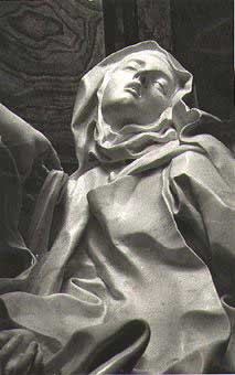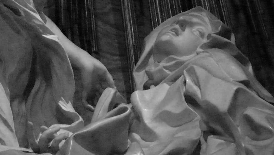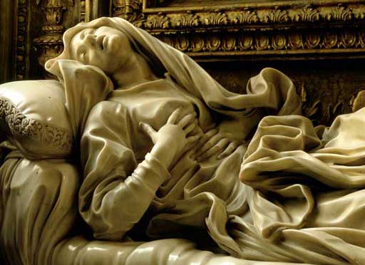 So sehen wir die Figur der heiligen Teresa von Avila wie Bernini sie in Roms Kirchen anschaulich machte.