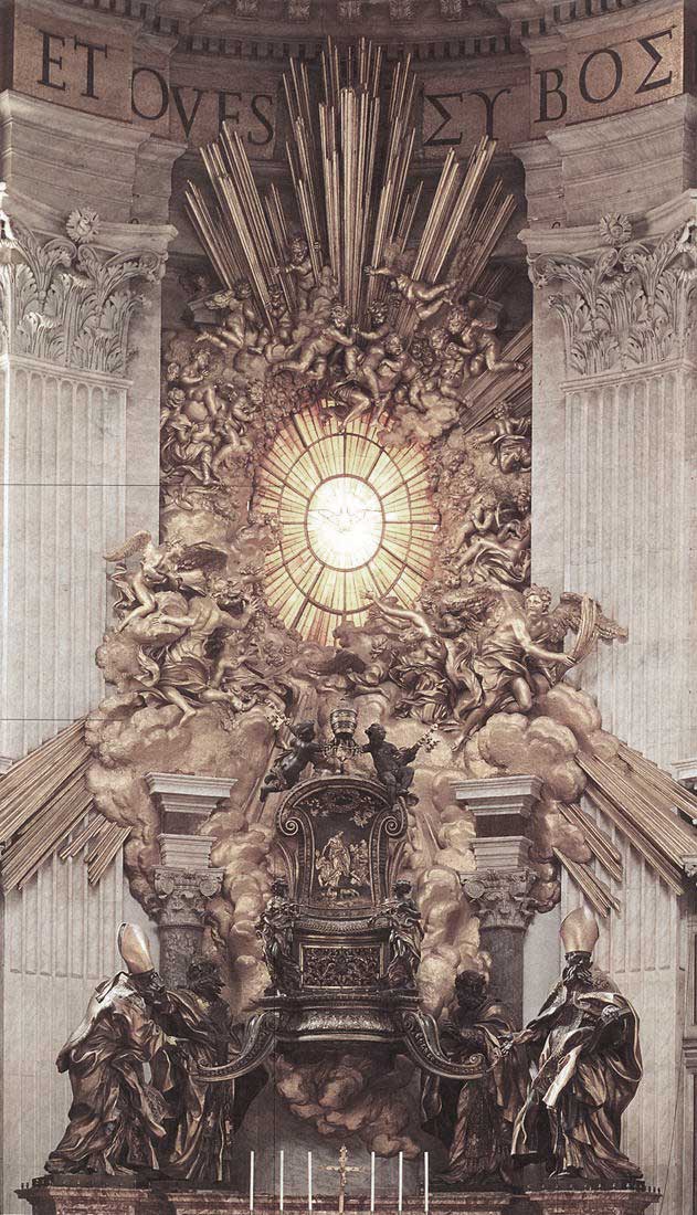 Der Stuhl der Päpste von Bernini. Gestützt von den Säulen des Himmels, so war es gedacht, in der Schar jener himmlischen Kinder im Licht der Erkenntnis. Das Richtige zu sagen und zu tun.