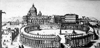 In die Kirche des Papstes kommen die Besucher durch die Kolonaden und über den Platz des Berninis.