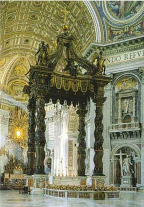 wir sehen wo der Papst predigt, über dem Grab Petri, unter dem Baldachin Berninis.