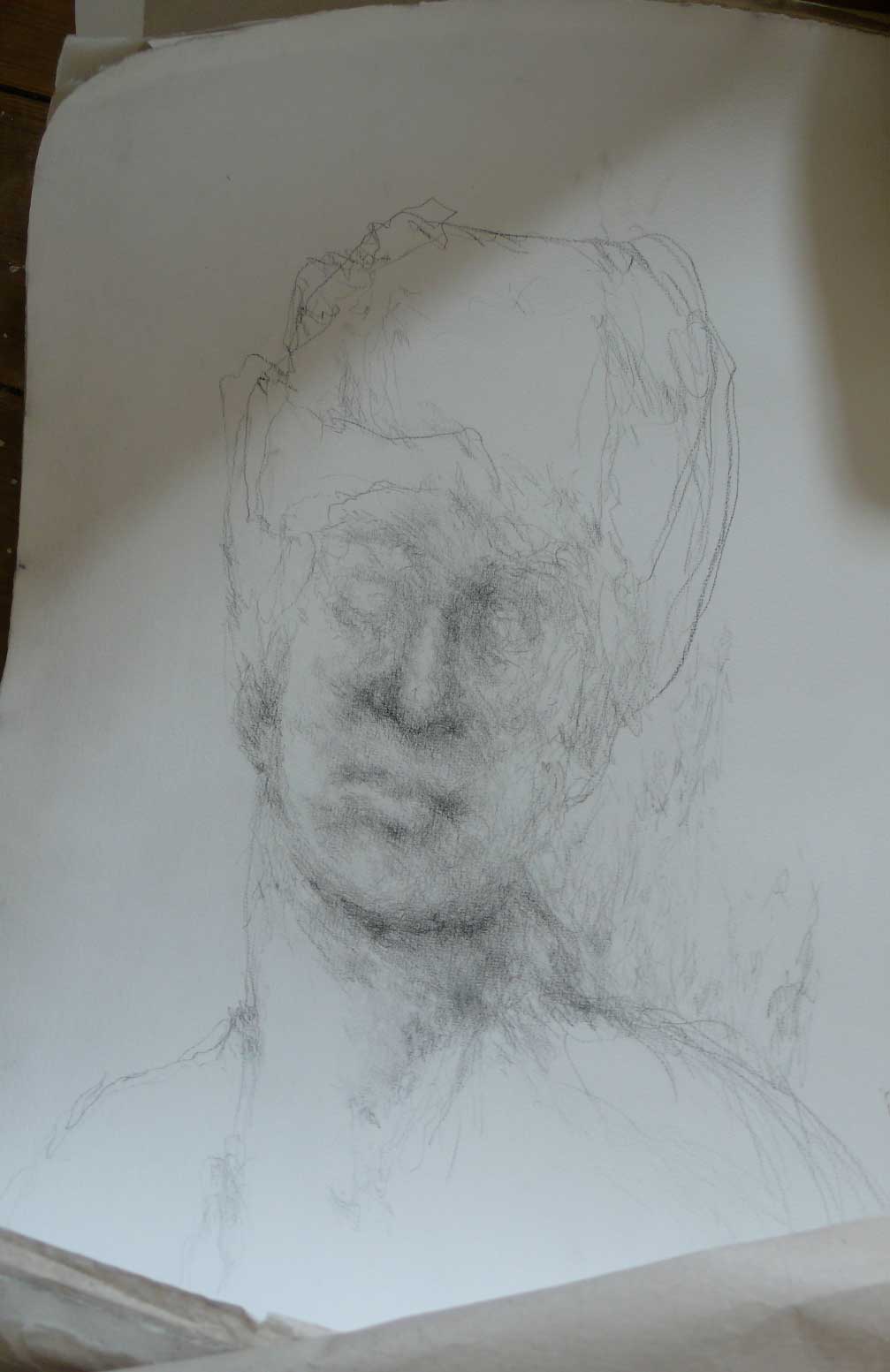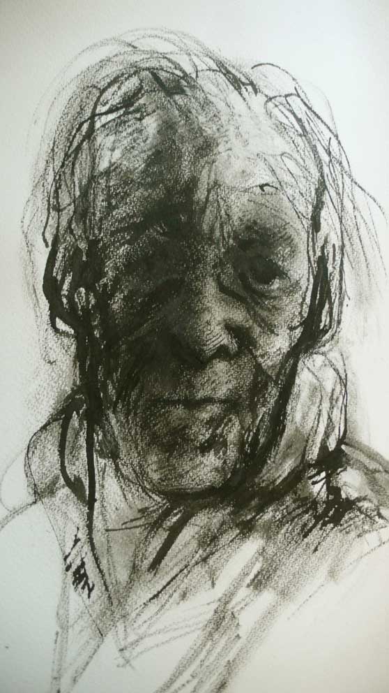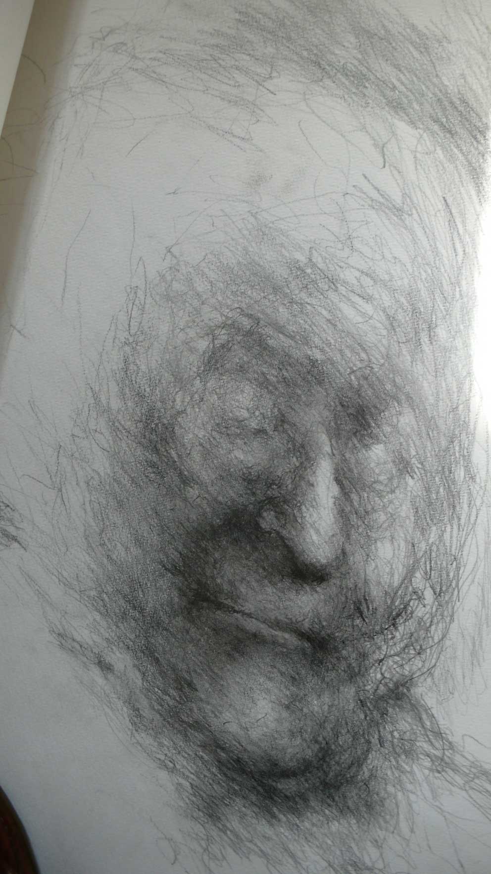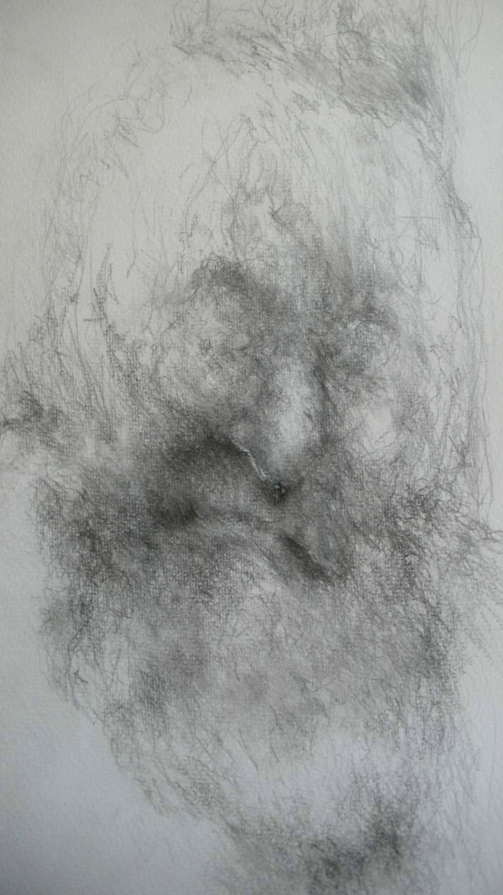 am Ende konnte sie die Werkzeuge nicht mehr halten und hatte keinen Druck, da waren nur noch Punkte mit dem Finger zerieben und verbunden. Die Punkte und der Finger als letzter Trieb sich auszudrücken.