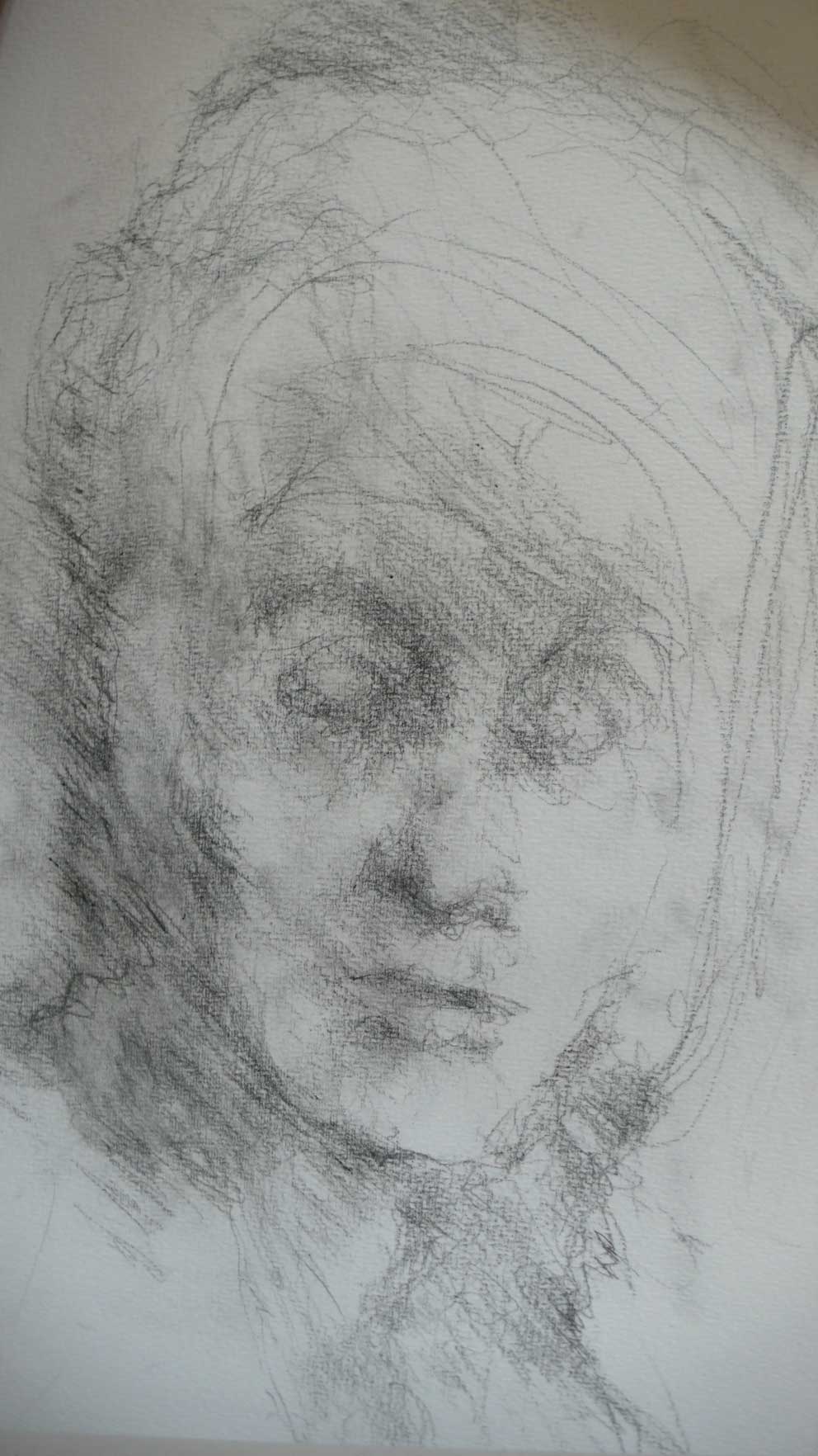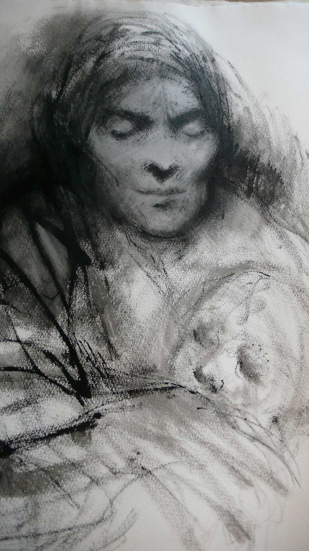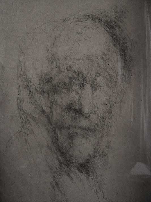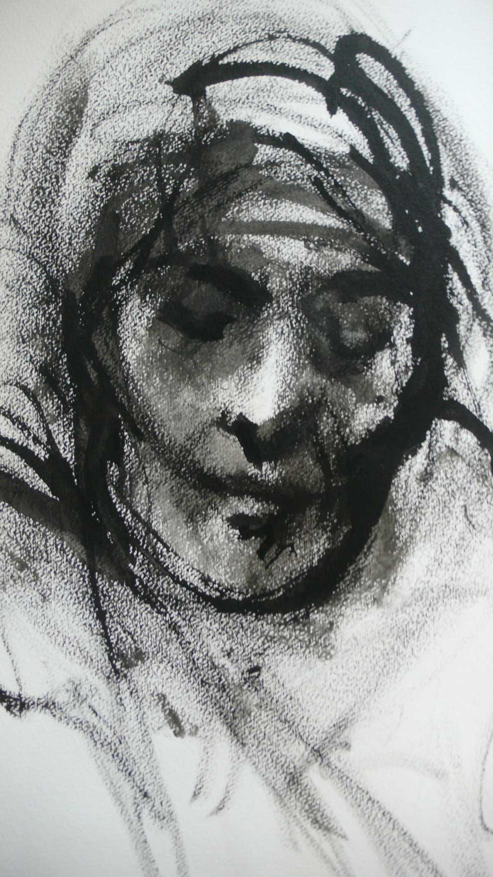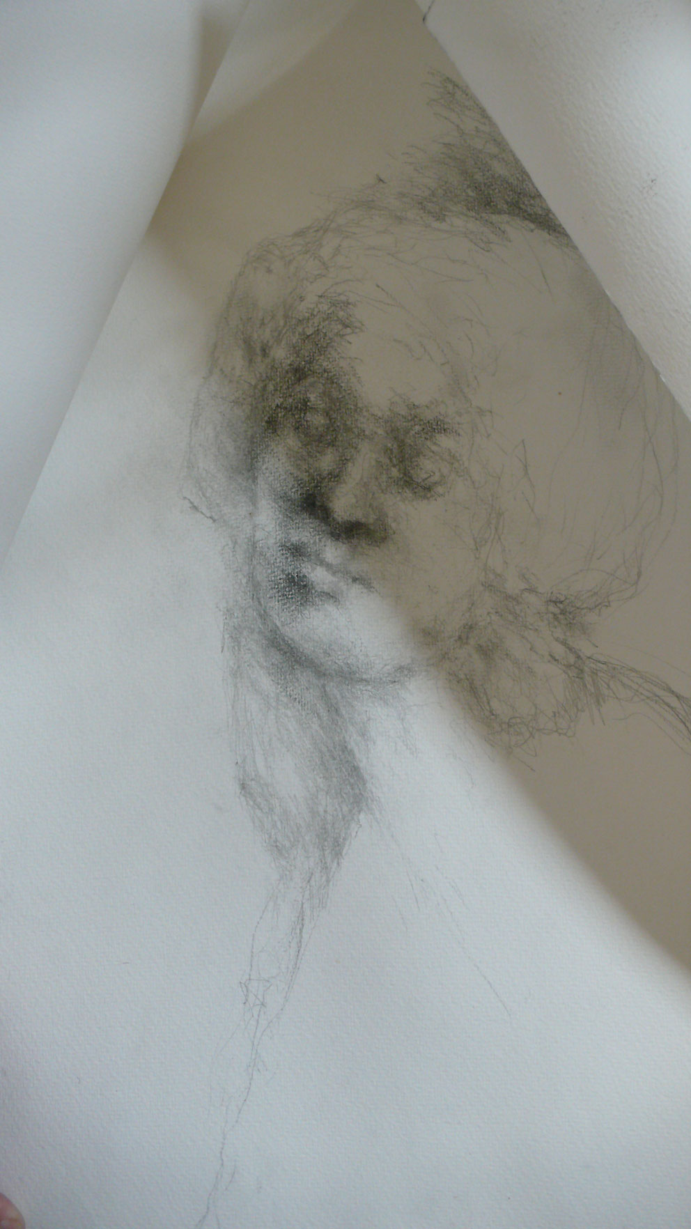 am Ende konnte sie die Werkzeuge nicht mehr halten und hatte keinen Druck, da waren nur noch Punkte mit dem Finger zerieben und verbunden. Die Punkte und der Finger als letzter Trieb sich auszudrücken.