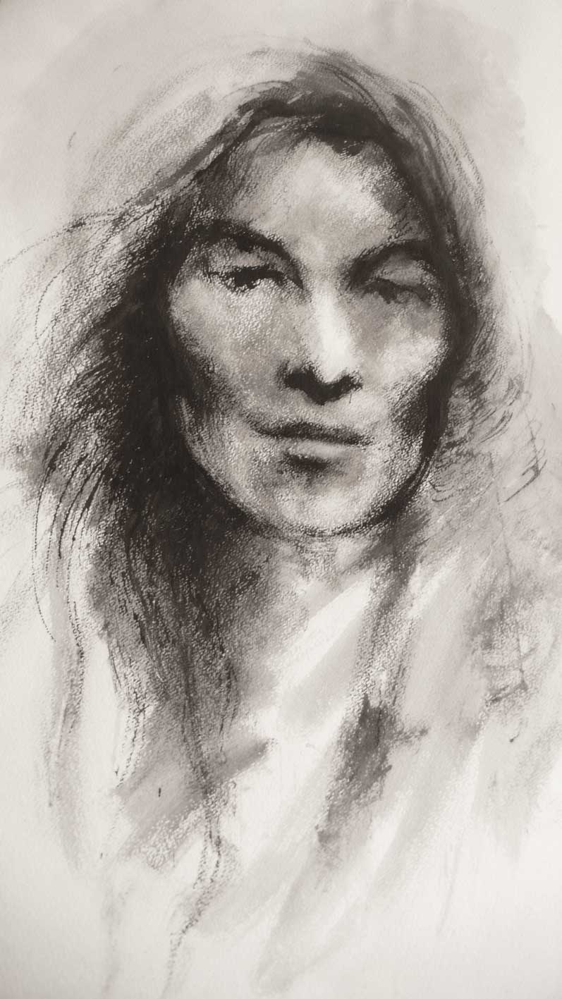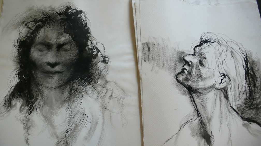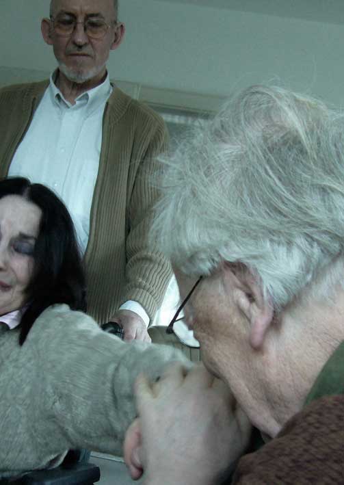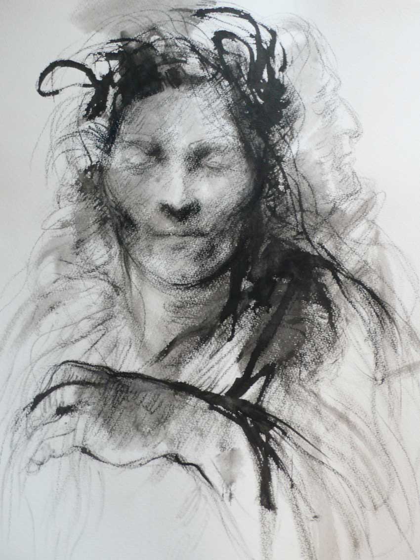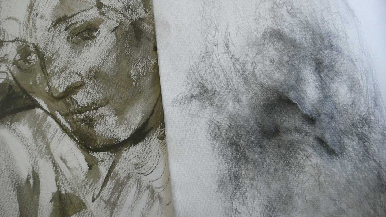 am Ende konnte sie die Werkzeuge nicht mehr halten und hatte keinen Druck, da waren nur noch Punkte mit dem Finger zerieben und verbunden. Die Punkte und der Finger als letzter Trieb sich auszudrücken.