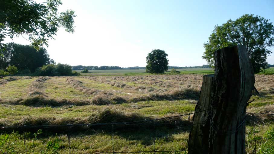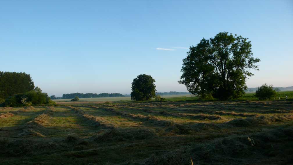 Diese Wiese mit den langen Reihen Heu gibt es nicht mehr, warum. Die Tiere kriegen es nicht mehr, die Maschinen machen es nicht.