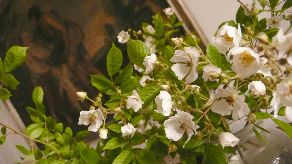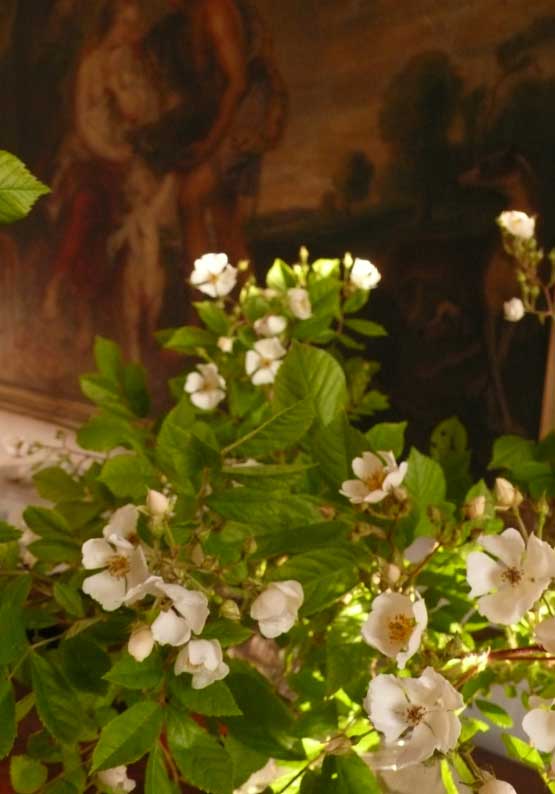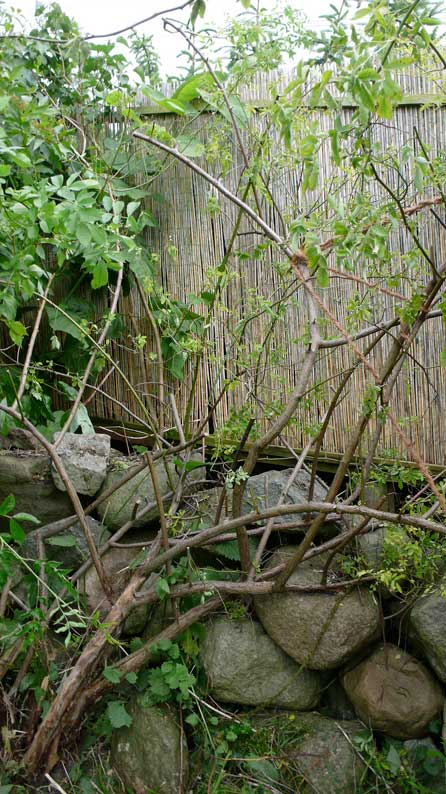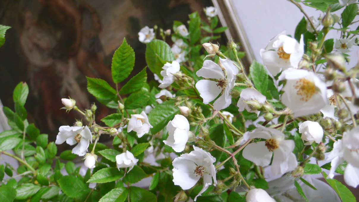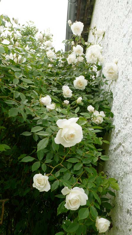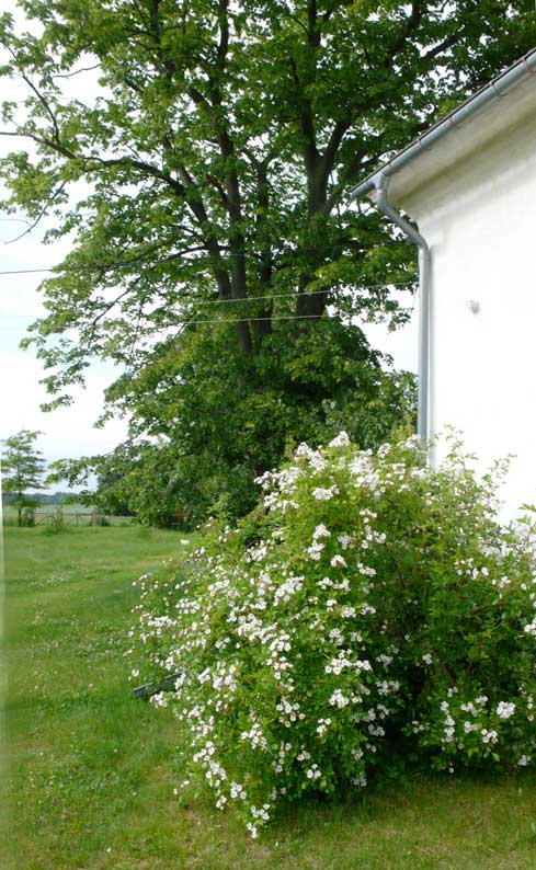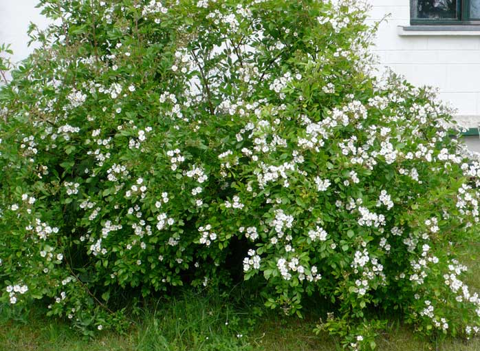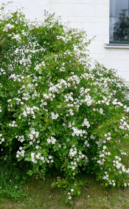Am anderen Eck des Hauses sieht mans "Rosa multiflora".