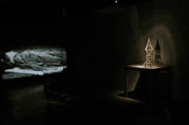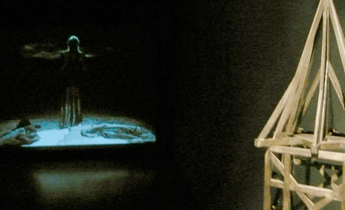 Beide laufen im selben Raum gegenüber, so, dass man beide sehen und hören kann je nachdem, wem man sich zuwendet und in der Mitte beide. Was entsteht ist der dritte Film aus beiden in jedem, der sieht und hört.