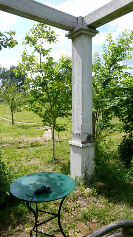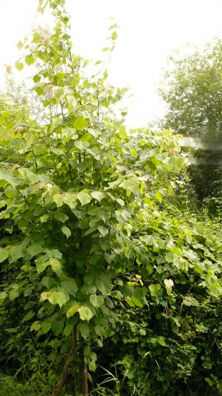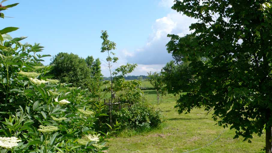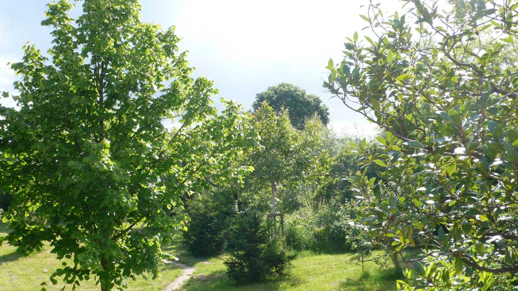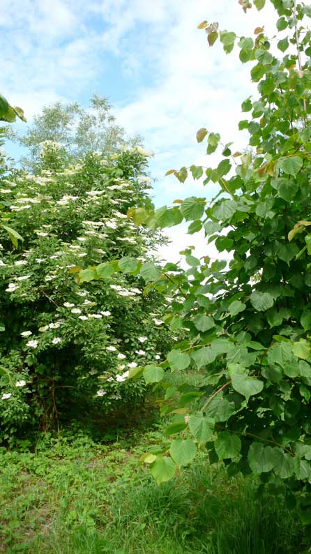 alles selbst dort gepflanzt aus fingerdicken Stämmen für einen Euro gerettet aus dem Rest. Nuss, Linde. Holunder.