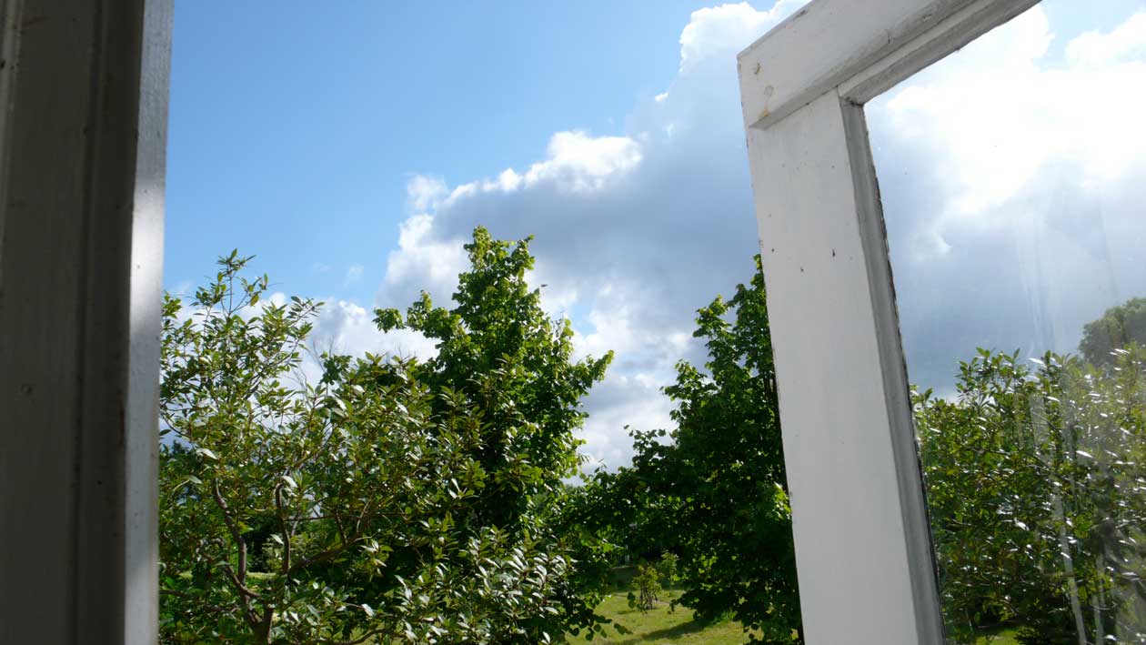 als ich wieder kam, malte ich in die Hauswand die Fenster offen hinein und zu Füssen war das Wasser ein See.