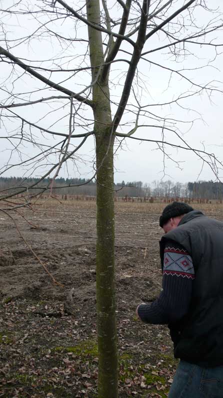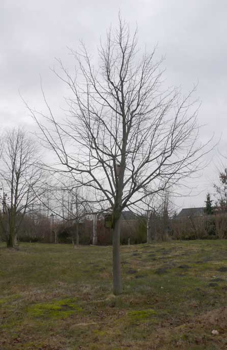 Schnitt der Gärtner nach 7 Jahren mit zugespitzer Krone. Und unten mühsam wieder gezogen