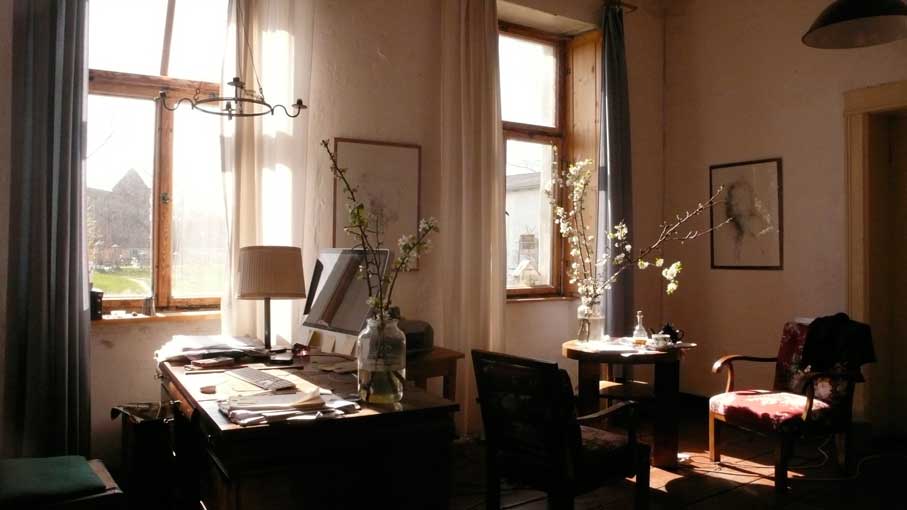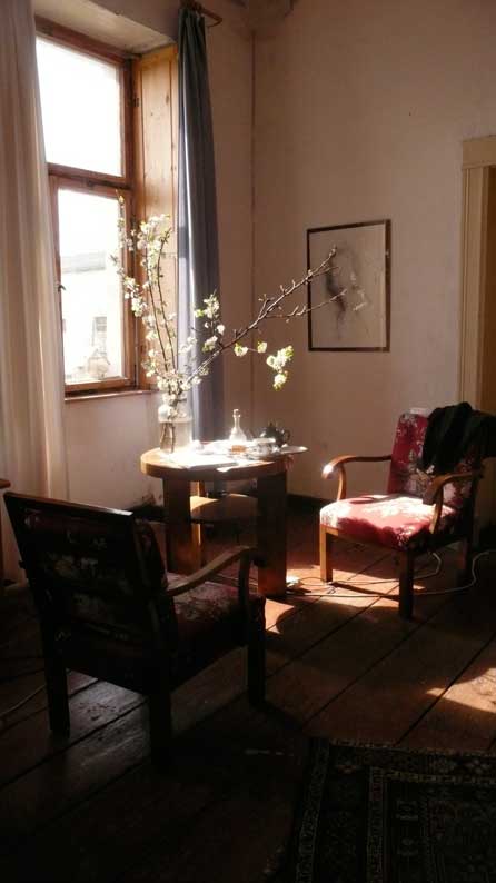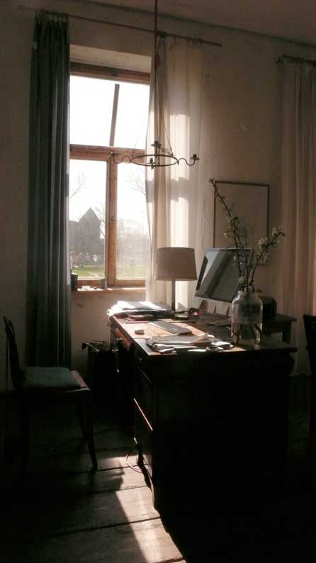 Da herum und vorbei, um die Ecke nach links, so im Haus die ersten Gänge im Dunkeln der geänderten Türen und Wände damals nach dem ersten Betreten wieder, nun im Offenen. Blinlings wissen wo. und was.