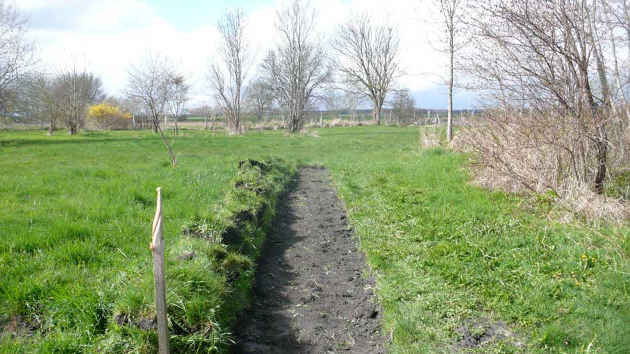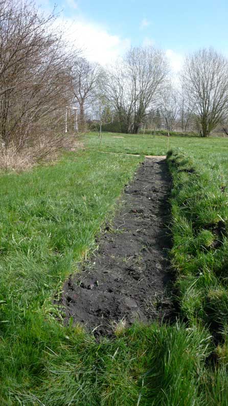 So also müsste das Quadrat des Weges rundum gehen, streng um die Ecke und lang herauf hierher. Vor dem Zaun zur Koppel die anderen Beete.Rinks und rechts die langen Reihen Spargel.