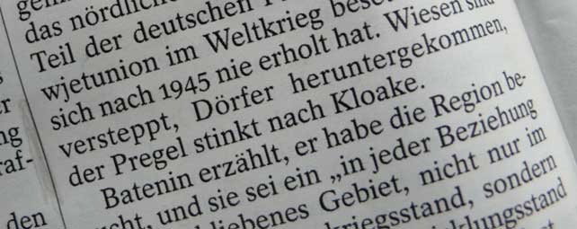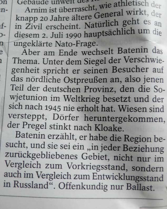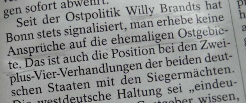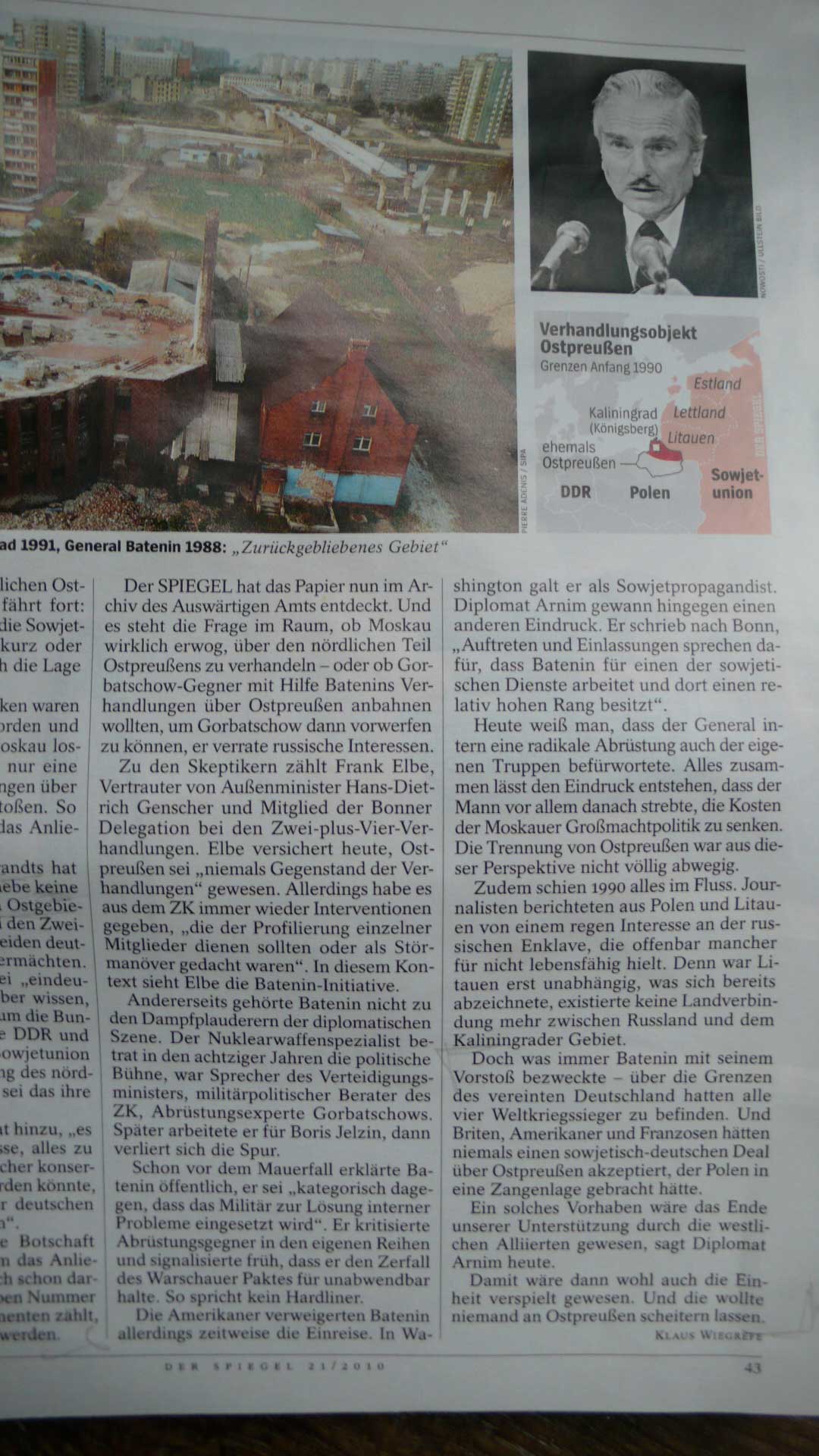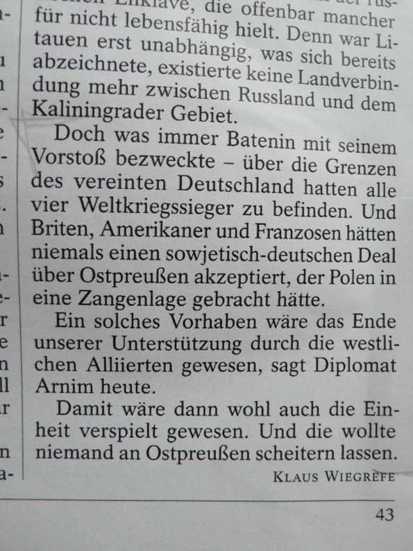 Wenn es so ist, dass wir dies Bild einmal zahlen müssem. Indem wir nicht mehr frei sind selbst die Geschenke der Geschichte anzunehmen, ist der Preis für so einen knieenden Auftritt zu hoch, da es die Polen in diesem Fall zu den Richtern macht unserer Handlungen. Auch der guten(so durfte die DDR den eigenen Teil Pommerns nicht mehr Vor-Pommern nennen, weil die Polen das hintere Pommern erhielten und jede Erwähnung Pommerns als Teil Deutschlands wie ein Angriff auf Eigenens verboten. Auch, indem wir das Schloss in berlin nicht zum Zentrum machen dürfen eigener Geschichte und schon gar nicht der verlorenen Geschichte, dass es ein ungeliebter Ort wird, verdruckst zum Ausstellungs Ort von fremden Ländern mit billigen Materialien. Hineinregiert von aussen. Und wenn die Enklave Ostpreussen diese Brisanz erhält, als Indiz unserer Existenz, dann gibt man dem, der hier eine wieder eine historische und natürliche Verbindung schuf (gewaltsam 1939), die vorher (in Verseilles) gewaltsam unterbrochen wurde, als Rache und falsche Aneignung dazwischenliegender Gebiete, nachträglich natürliche Rechte dies getan zu haben und zu allem, was dann folgte, an denn, die das verhindern wollten.