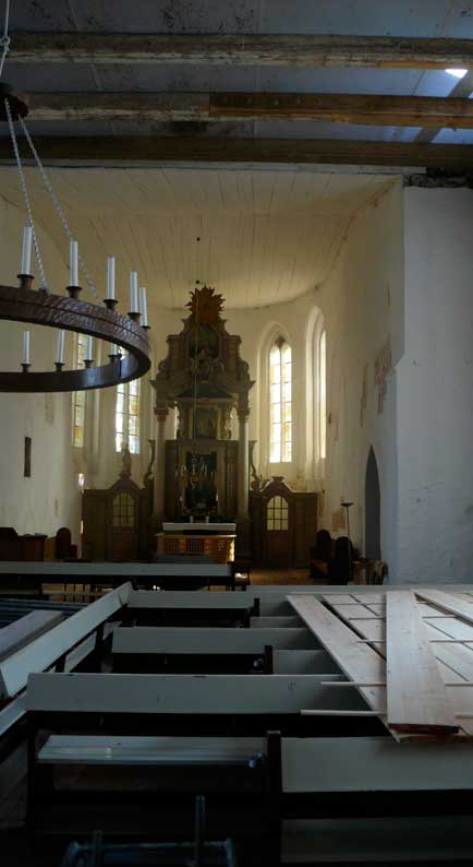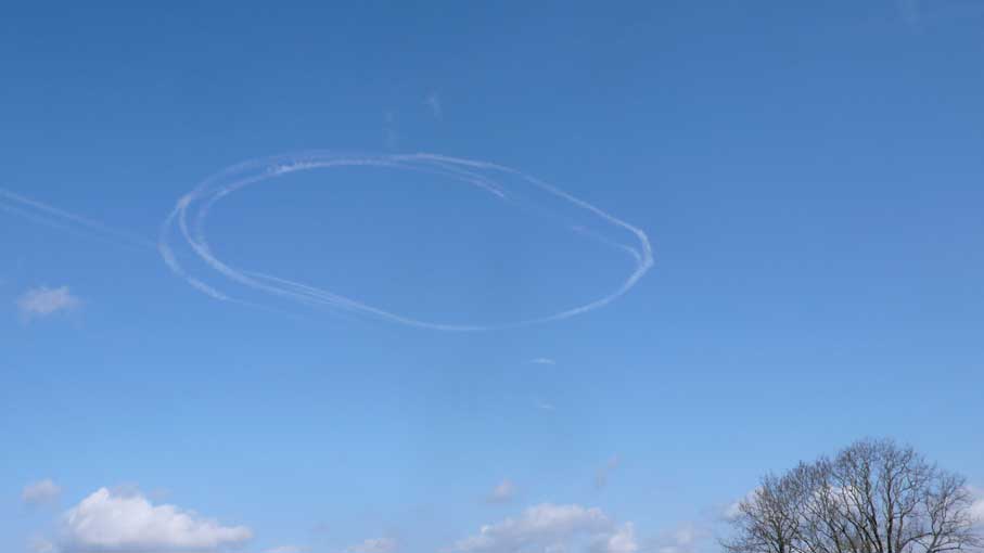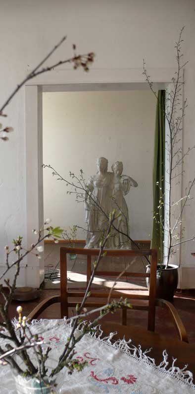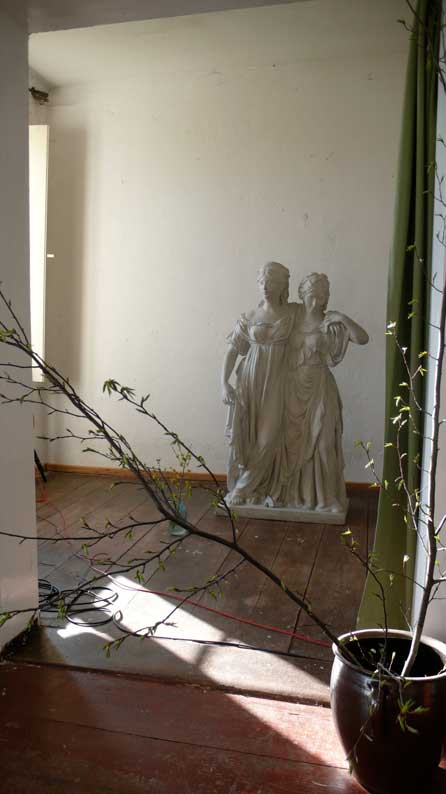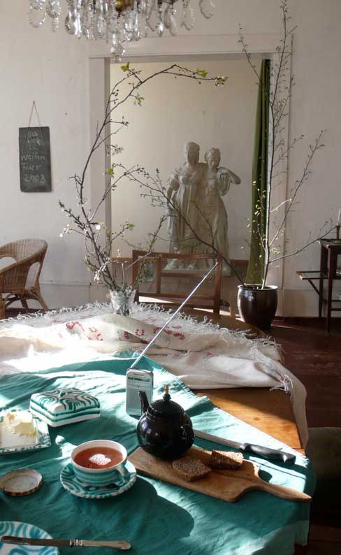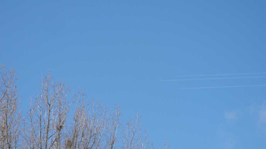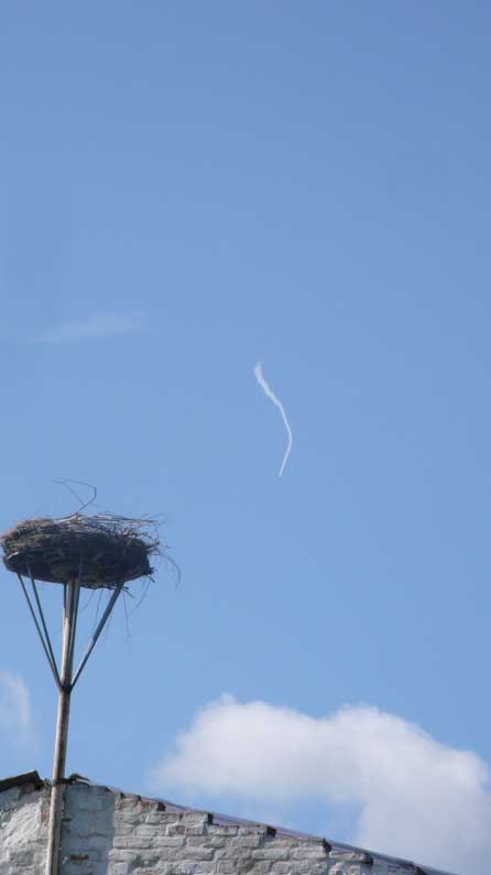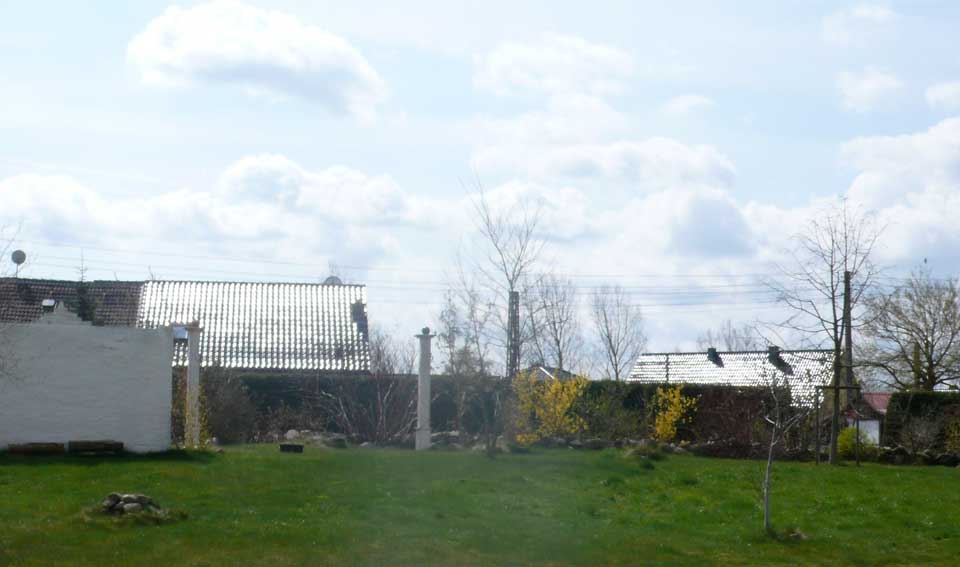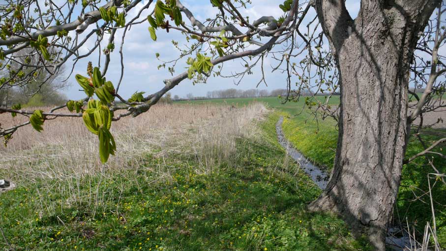über die Felder, dass nichts mehr zufliesst, nur noch durch, wie versteckt, und links und rechts ohne Bäume, dass nichts reinwächst, eine Schneise des Nichts, wo früher Leben war, für Tiere und Menschenkinder, Hollunder und Flieder.