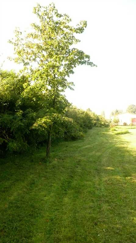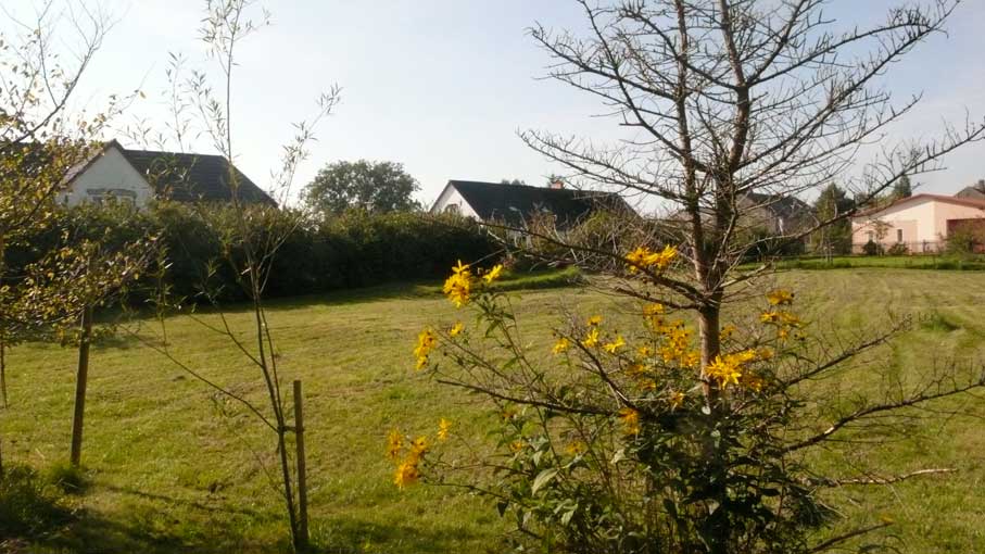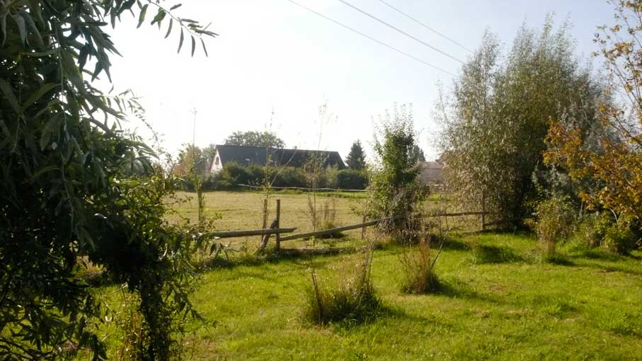 Langsam versinken die vorher alles bestimmenden Häuser am Rande nun des Neune Grüns und Lebens aus der Natur hinter Hecken schattengewährenden Bäumen.