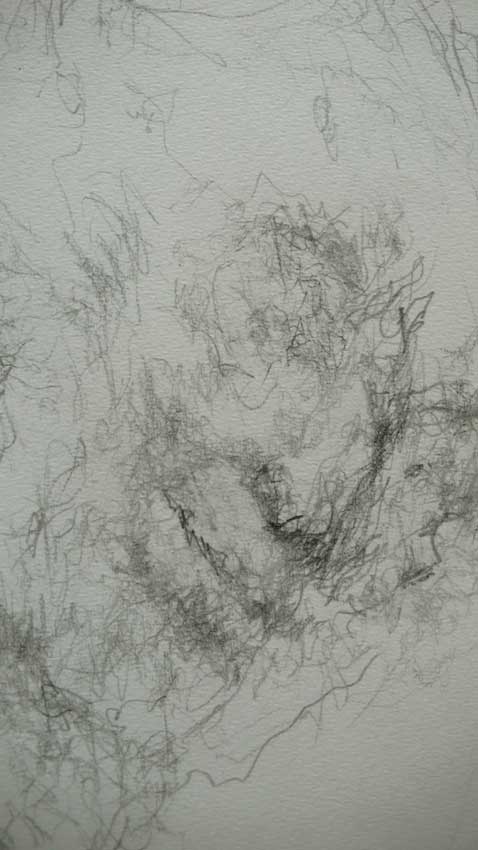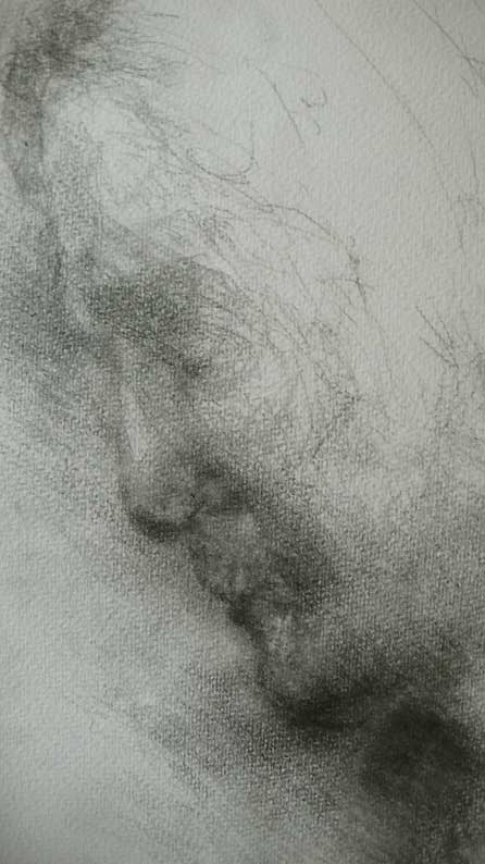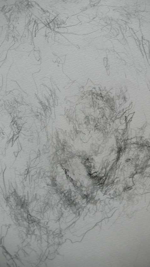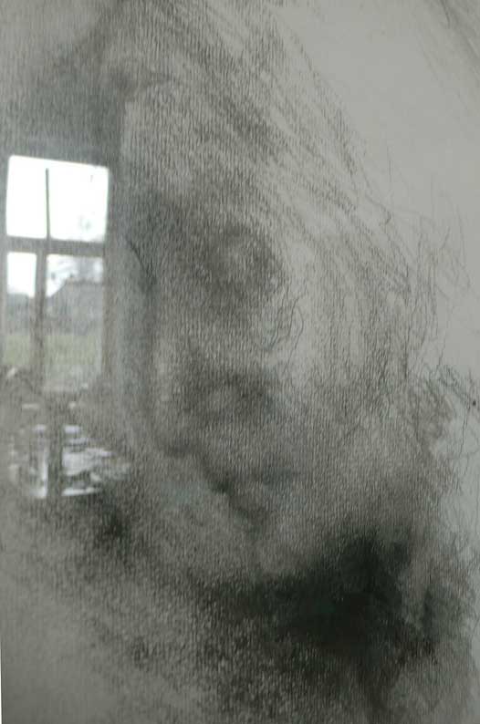 Und es steht schlecht um sie. Die, die diese Zeichnungen hergestellt, aus dem Schlag aus Tränen und Tabletten, mit denen man sie still gestellt, durch eben diese Köpfe noch mal gerettet, nun wieder in Tränen erstickend und durch Tabletten bewegungslos gestellt -ohne Zeichnungen wird sie nicht überleben. Ohne ihre Umgebung - "ja, warum". Ihr e Worte zuletzt.