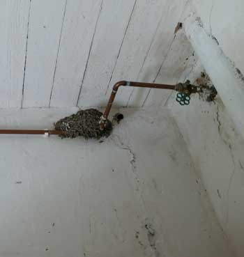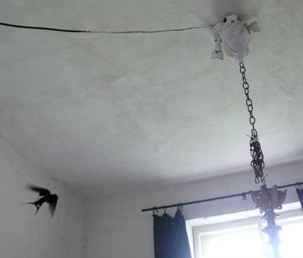 Aber zusammen in einem Raum, Schwalbe und Mensch ist schwer. Der Kot an Wänden der Bilder über Betten und Tischen und Fussböden, mit den Tieren, die sie mitbringen, in einem Raum und ganzem Haus -bis jetzt 20 bis 18 Nester zusammen- nicht gut.