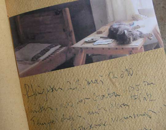 Auf dem Platz, wo sie lag, nun das Buch an sie, am Graben-Tempelchen begonnen. Mit meiner Erklärung warum die Schwalben nicht im Haus bleiben dürfen, wo wir wohnen. Der Gott der Schwalben möge uns vergeben.