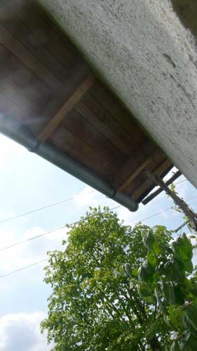 Aber unter die extra weit herausgebauten Dächer benutzen sie nicht nach Schwalbenart von aussen..