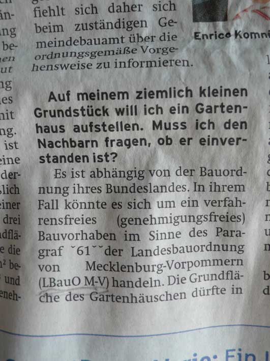 In der lokalen Demminer Zeitung(Nordkurier 19.8.) geben Anwälte Auskunft zu aktuellen Fragen. Dabei ergab sich zuletzt diese Frage, die hier interessiert. Nämlich zum Abstand und damit überhaupt zur Rechtmässigkeit der Anlagen, die hier massiv auftreten mit nachhaltigen Forderungen an alle.