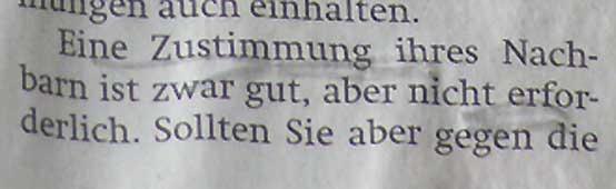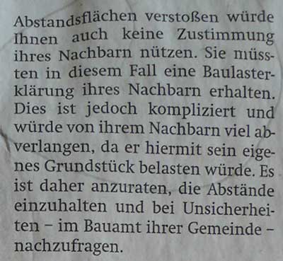 also auch wenn der direkte Nachbar aus welchen Gründen auch immer -hier die Kirche und Friedhofsveraltung und die Gemeinde auf der anderen Seite- nicht protestiert, gilt ein allgemeines Abstandsgesetz.