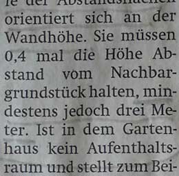 Abstand also mindestens 3 Meter für jeden neue bauliche Installation(Gartenhäuschen mit Fenster und Fernseher, Ofen plus