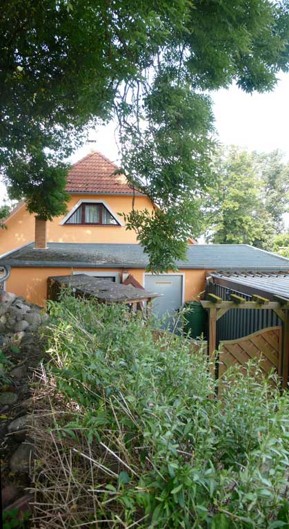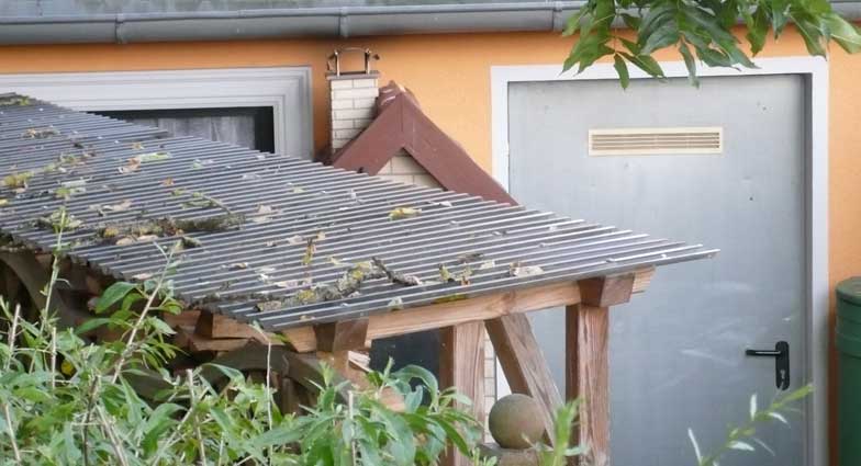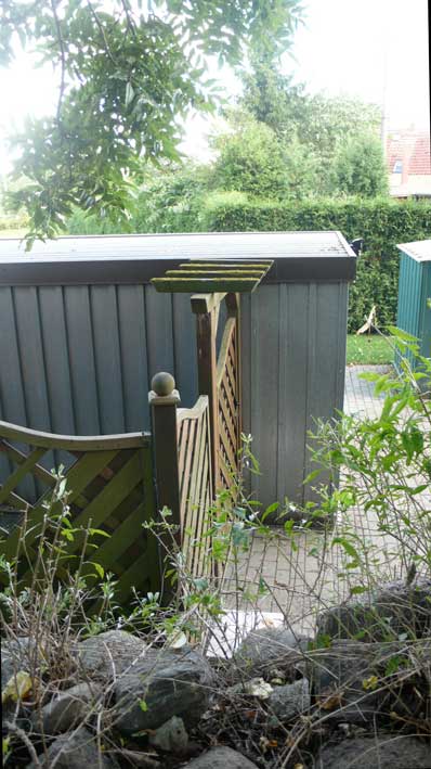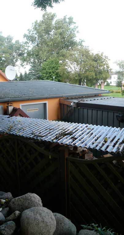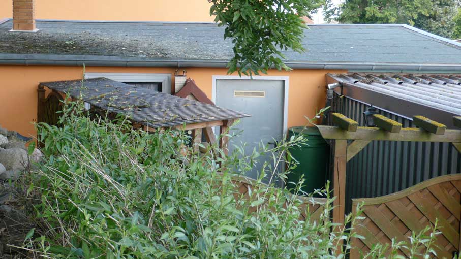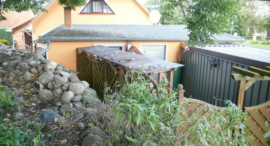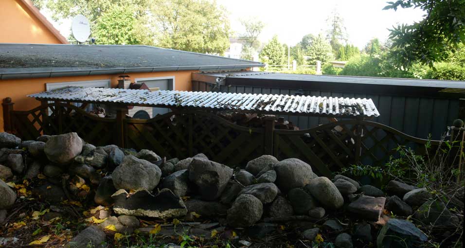 Grillanlagen usw.). Hier mit einer Nähe, die imstande ist, das Regenwasser auf das benachbarte Gundstück(Friedhof) zu leiten.