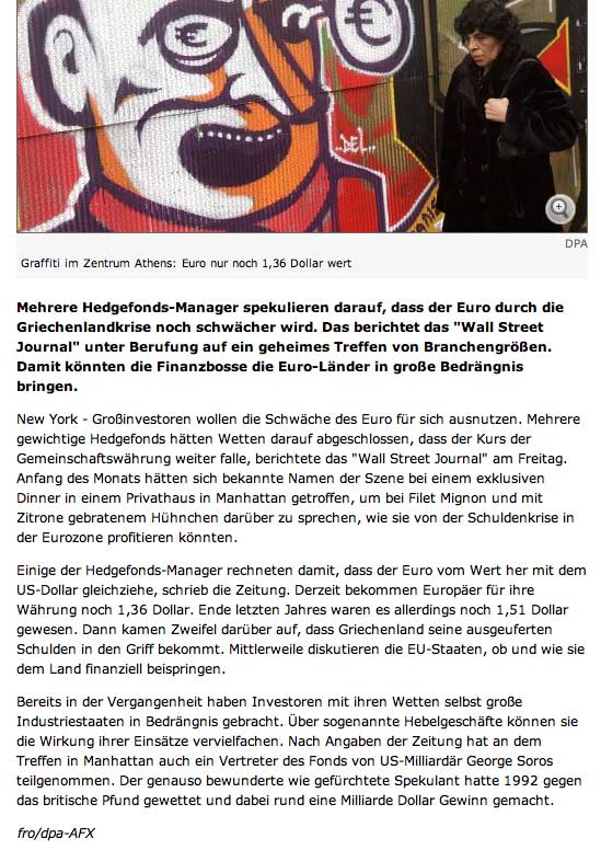 Und in diesem Zusammenhang müssen wir auch sehen, was sie mit Europa vorhaben und nicht nur an einem Ort. Und nicht nur aus Raffgier. Erkennen wir das System dahinter und schaffen wir Gegenwehr. In Griechenland täte einer not, den die Gemeinschaft ernennt, auf Zeit, die Glaubwürdigkeit in die Hand zu nehmen, auch der Einschränkungen aller, fals er als Fremder nur frei wäre von Gewinnsucht, die sie alle zu kleinen Räubern werden lässt, wenn die Oberen sich die Taschen vollstopfen.