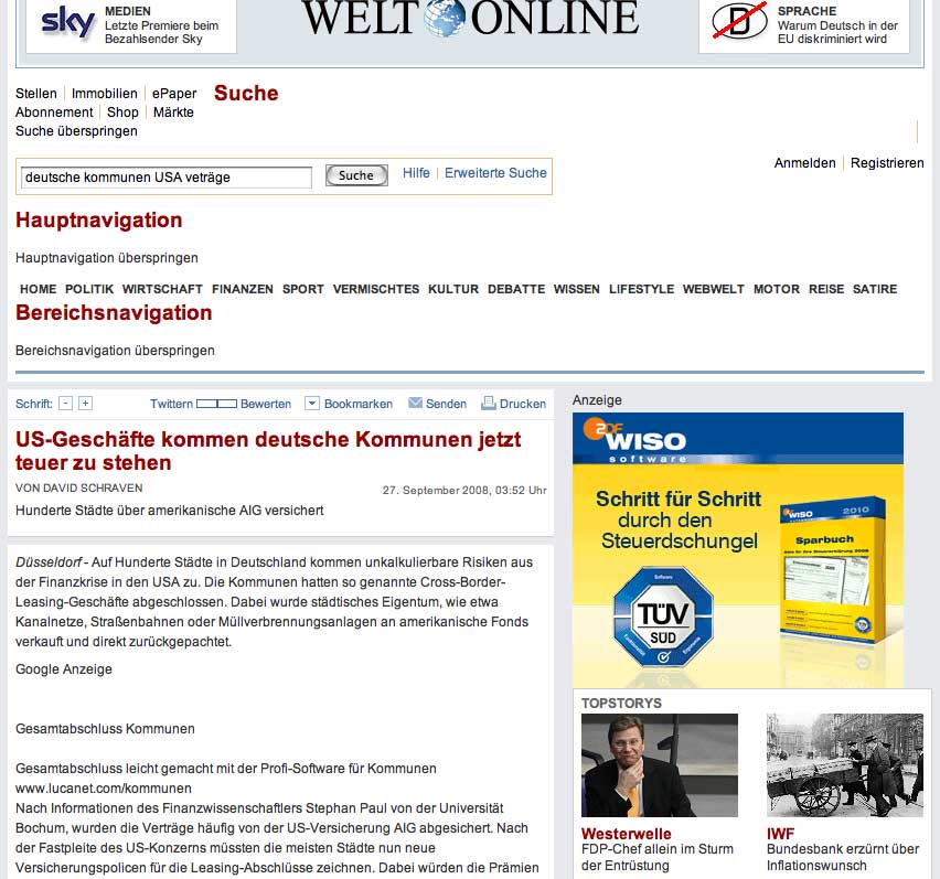 In Deutschland können wir sehen, wie falsch es läuft, wenn Erniedrigung und Fluch nur mehr materielles Interesse übrig lässt und wir zu Opfern werden von denen, die die falschen Gewinne vormachen bis wir als Geiseln ihres Fluchs das Schicksal derer teilen müssen, in Zusammenbruch und Untergang nun derer, die das Falsche bieten. Die Müllabfuhr und Infrastrukturen unserer Städte nach USA zu verkaufen, ist zu folgenschwer im Sturz der Kultur nun, wie von Anfang an die Ideen dazu der Verführer. Und durchaus vergleichbar mit jenen Banken, aus USA, die nun die Schulden Griechenlands bis Portugal und Spaniens und Italiens in Händen halten.