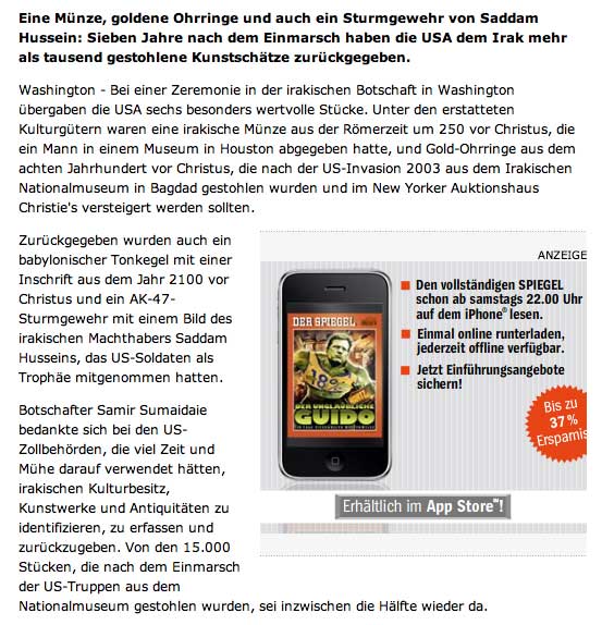 Denn um was es dort wirklich geht, sehen wir in der falschen Güte des Agressors und Zerstörers von Kulturen der Menschheit, wenn er Geräubtes in Teilen und lautstark zurückschmeisst, als sei es eine Gnade.Wo die SU noch aus purem Machtinteresse scheiterte, am Ende ganz, jagt die USA nun der Verletzung ihrer Eitelkeiten nach, weltweit und alle andern mitreissend in ihren Untergang, als ob sie die Apokalypse der anderen erfüllen müsse.
