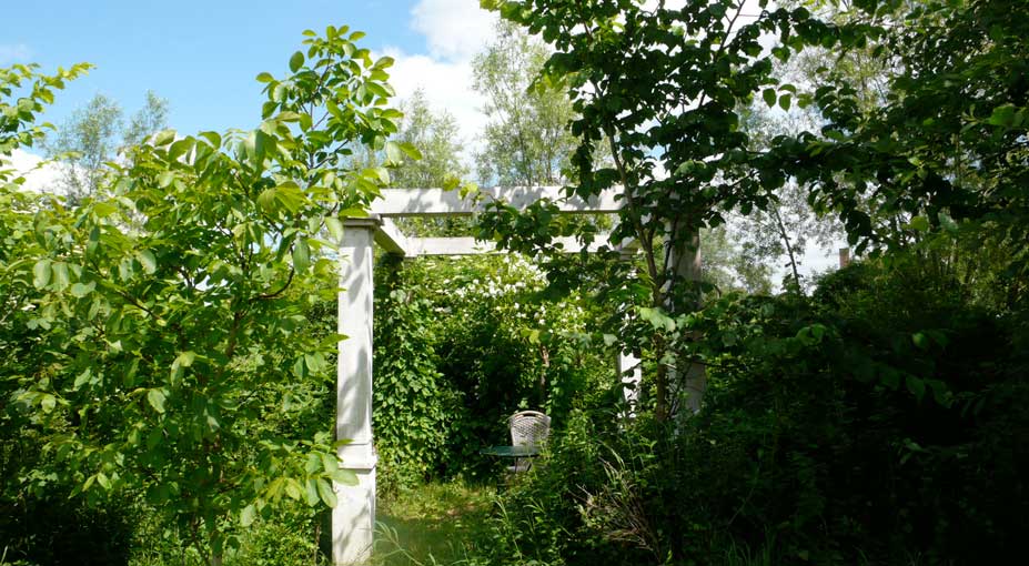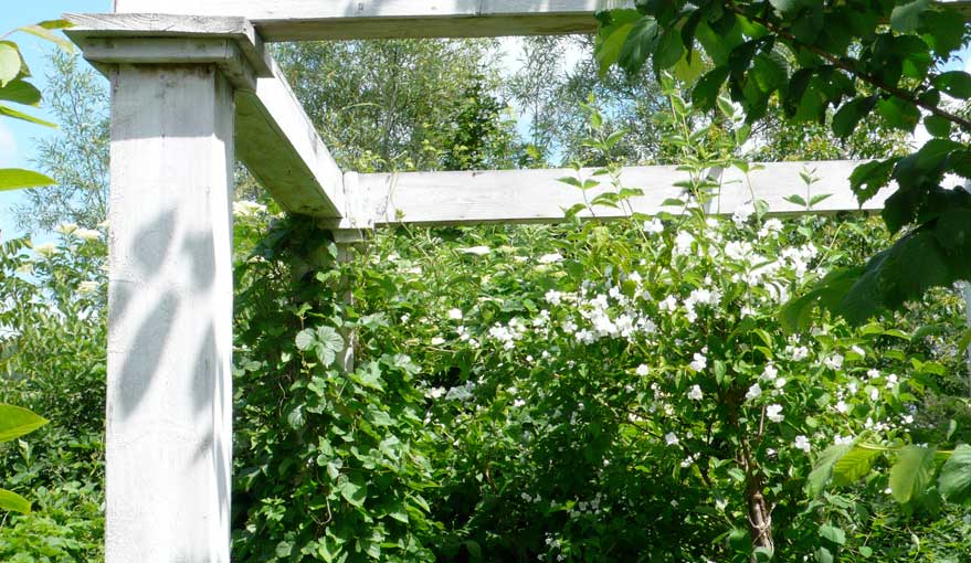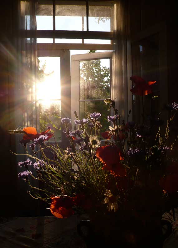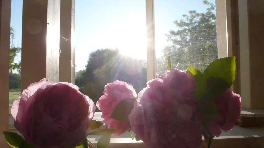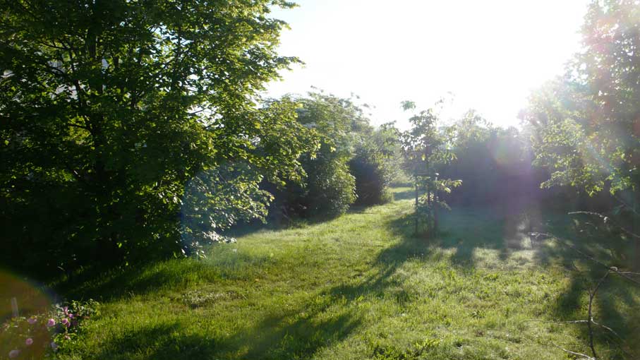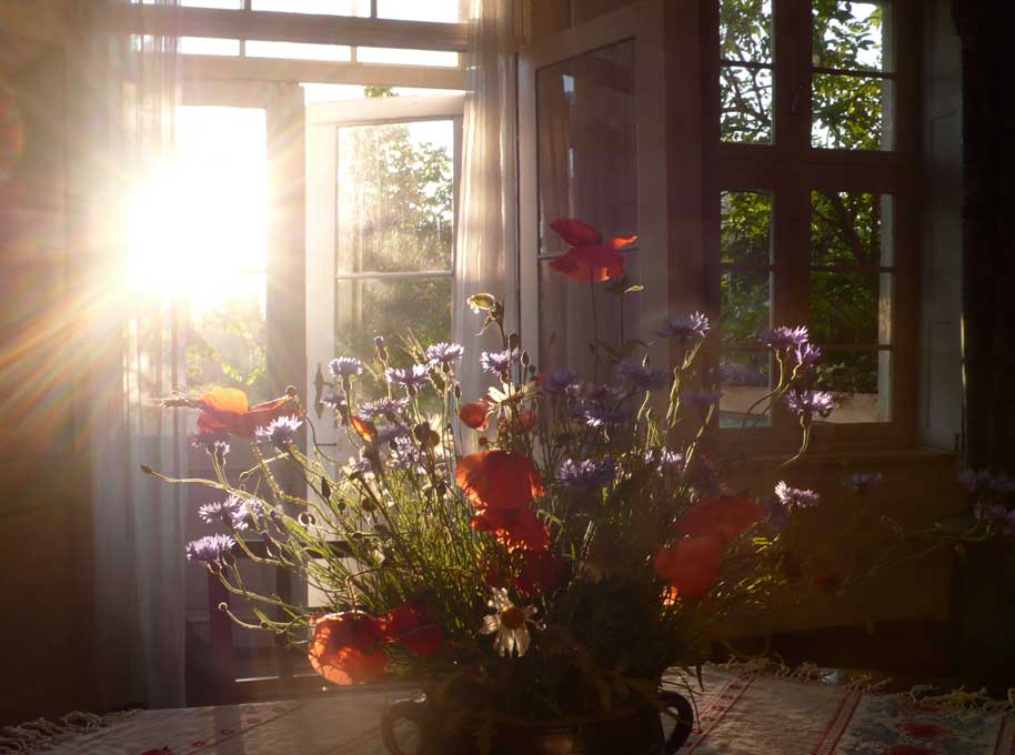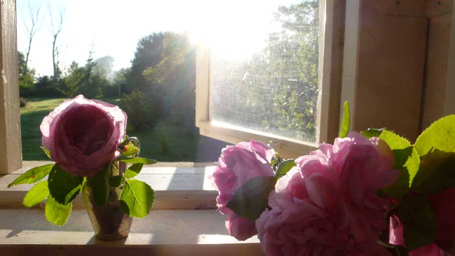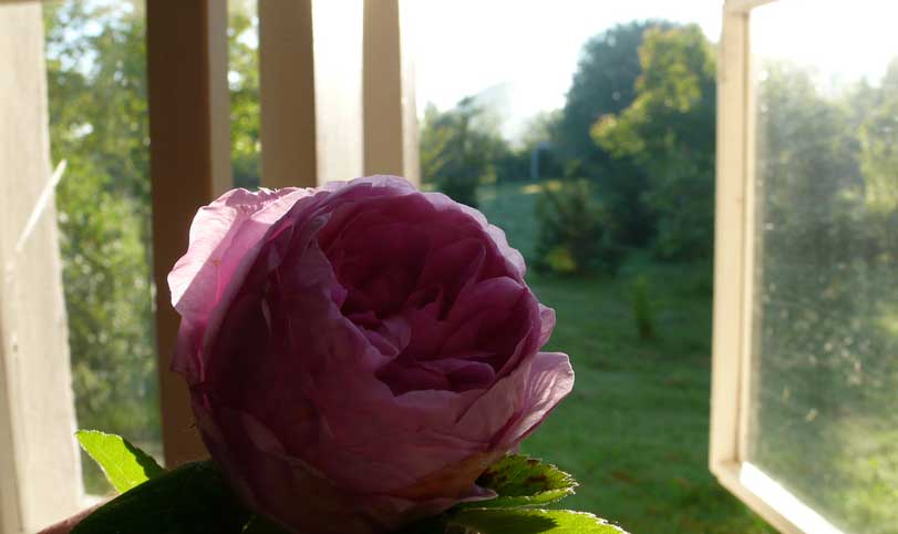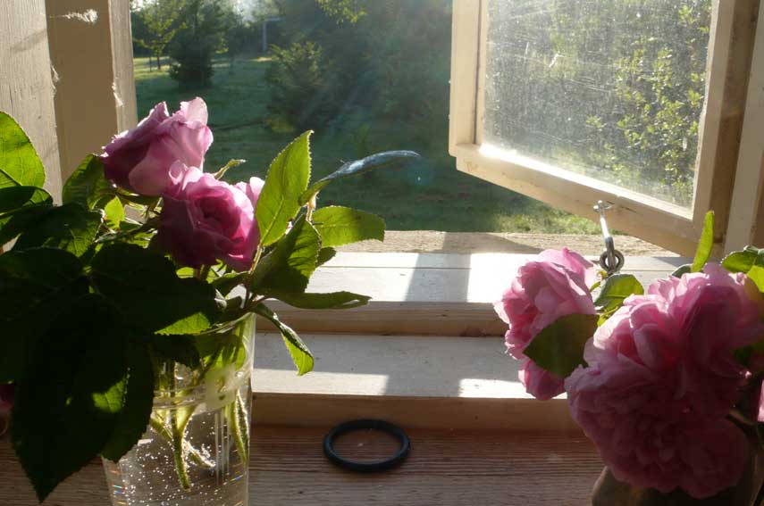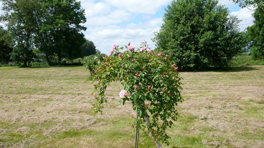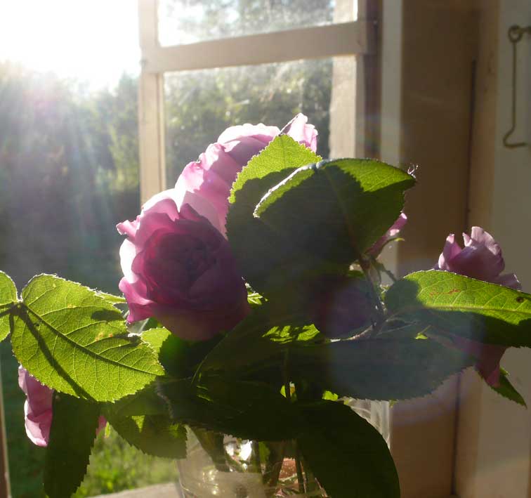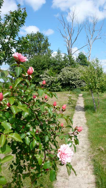 diese Rosen sind solche alter Art. Sie blühen nur einmal im Jahr und haben kurze Stiele. Wer sie wählt zu pflanzen in der Fülle der Farbvarianten, Gerüche und Blattgeheimnisse, auch ihres Welkens wird die anderen nicht mehr wollen. Es sind diese, die man in keinem Laden kaufen kann, die hier im Halbschatten ihrer Düfte blühen. Immer neu und immer andere, zusammen. Und die einfachen wilden auch. 80 zählen wir nun alle in der Hoch-Zeit ihres Jahres, danken, dass man sie umsorgt, mit Dünger, ausschneiden. hochbinden und in ihrem Wesen uns einzulassen, indem man sie wahr-nehmend ehrt.