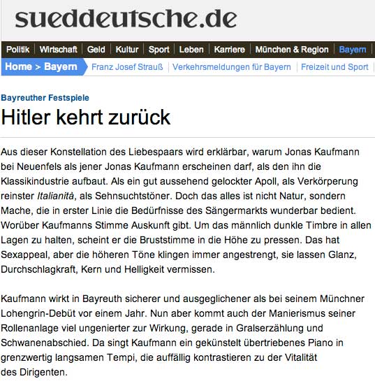 Wer diesen Lohengrin(Jonas Kaufmann) in der Gralserzählung am Schluss hörte, weiss, dass alles, was die Bilder erzählten, nicht dazu passt und absolut falsch ist. Dieser Musik und dem Text zu entsprechen oder sie zu kontrastieren, muss man können. Daraus ein Neues zu machen ist eine eigene Kunst.