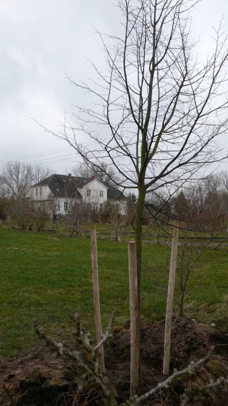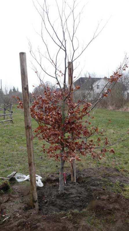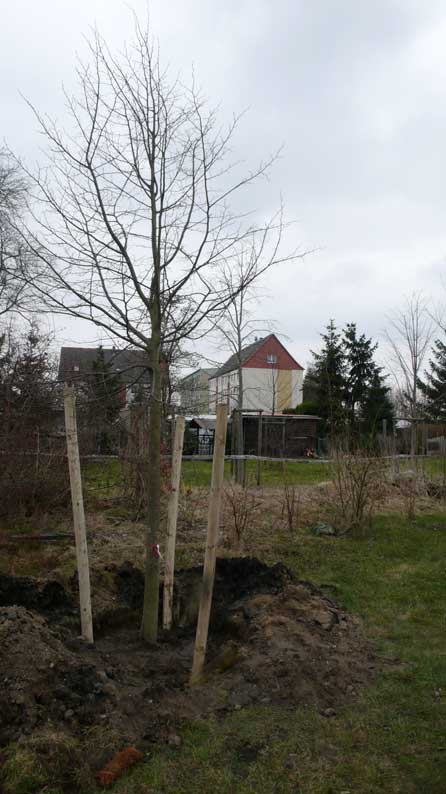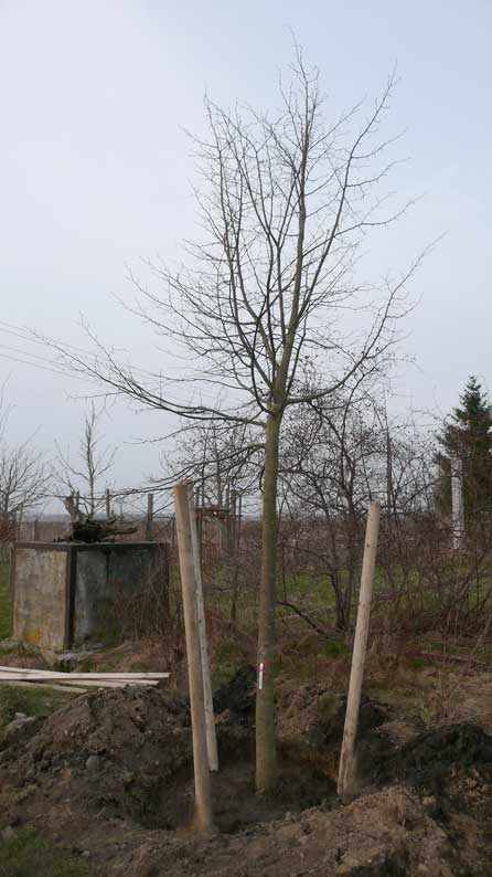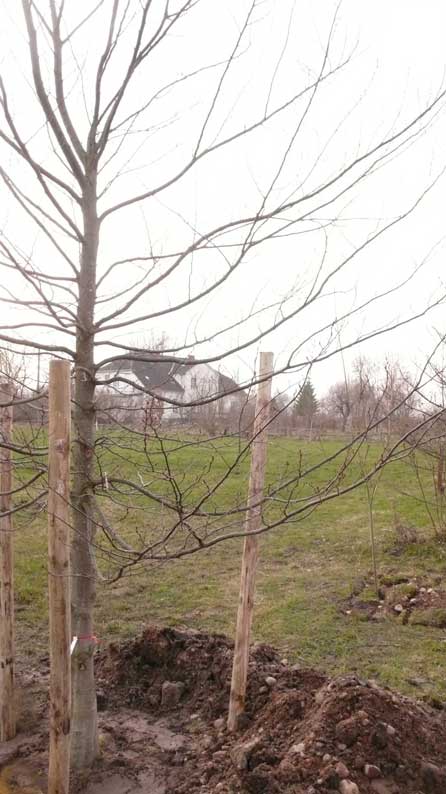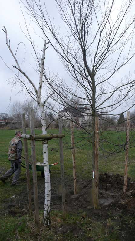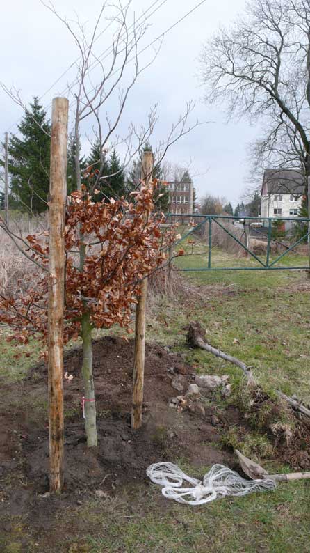 3 neue Bäume ersetzen die toten 3 Birken, zwei 350 Euro Eichen und 2 Koreatannen, die Hainbuche...