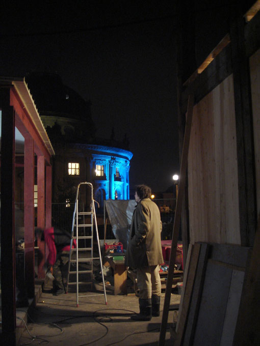 aus Berlin die Bilder vom Krippenaufbau gegenüber de, Bodemuseum, wo im Sommer das Theater steht