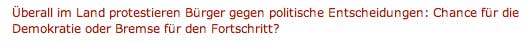 Interessant und symptomatisch verstehen auch hier die Vertreter der Ämter und gewählten Institutionen(Räte) mit Mehrheitsentschlüssen sich als die Demokratie, ohne zu verstehen, dass erst im Zusammenhang mit den Bürgern auch nach der Wahl nur das Ganze entsteht.