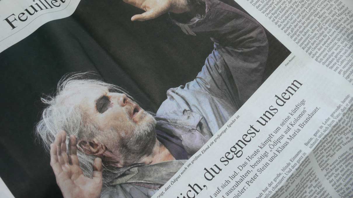 Zweimal alte Männer. In Salzburg, nun Klaus Maria Brandauers im letzten Ödipus des Sophokles, sein Triumpf mit Peter Stein auf dem alten Theater ihrer Jugend beharrend, damals Oskar Werners Ende dort in Salzburg auf dem Theater im Hamlet mit Verweis auf das andere, neue Theater Peter Steins.