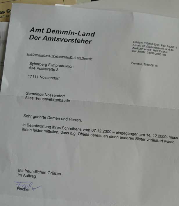 Basis war das Gerücht um den Verkauf des alten Feuerwehrhauses am Eingang des Hofes, und des Hauses, jener Feuerwehr, der mein Vater während des Krieges bis nach Stettin organisatorisch und finanziell vorstand, dass ich mich verpflichtet fühlte, da was zu tun oder mitzubieten.