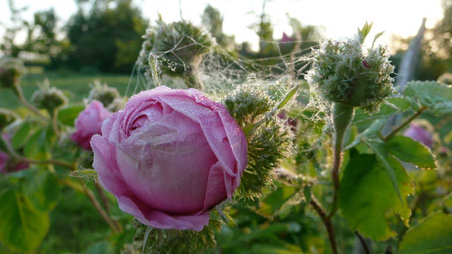 Rosen und Anlage in Verbindung zum Teich über die Strasse